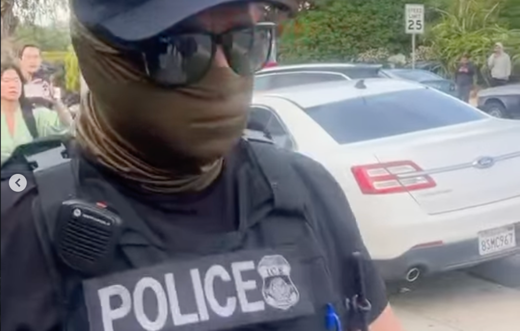 ICE officers pushed and pepper-sprayed multiple Santa Barbara residents during a reported immigration enforcement operation in the Eastside neighborhood of Santa Barbara on Wednesday morning. The chaotic scene was captured on video, which shows the masked agent, wearing a vest marked “Police,” spraying a woman who had showed up to document the activity in her neighborhood.