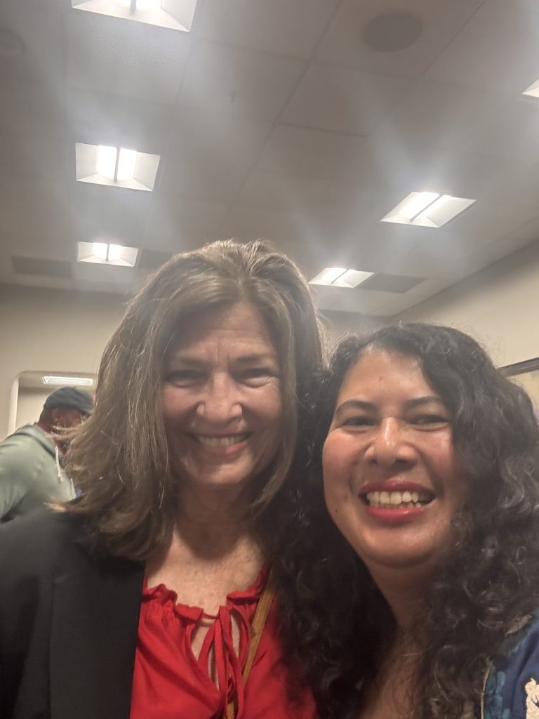 Poetry reminds us of what we hold dear. It’s both a way to share our collective joy and grief. When our current Poet Laureate, George Yatchisin, asked me to contribute an ekphrastic poem to the Fare Trade exhibit at City Hall, I chose Patricia Clarke’s photograph, “La Super- Rica Taqueria, Santa Barbara (2015).” The Fare Trade exhibit was impressive on many levels. The addition of the Papel Picado hanging from the ceiling already said Fiesta and drew the eye to the corridor in City Hall, where people usually go when they need to pay a bill or find an important legal document. The art on the walls was photography by Brett Leigh Dicks and Patricia Clarke, all featuring photographs of taquerias and diners. I chose Clarke’s “La Super- Rica Taqueria, Santa Barbara (2015)” because it was the first eatery I went to upon arriving in Santa Barbara 25 years ago, an initiation for most newcomers. When I sat down to respond to the photograph and compose my ekphrastic poem, I also had Renee Good on my mind. ICE looms large in my everyday thoughts. As a participant and fellow listener, I enjoyed the variety of poems inspired by the exhibit and the standing-room-only crowd.