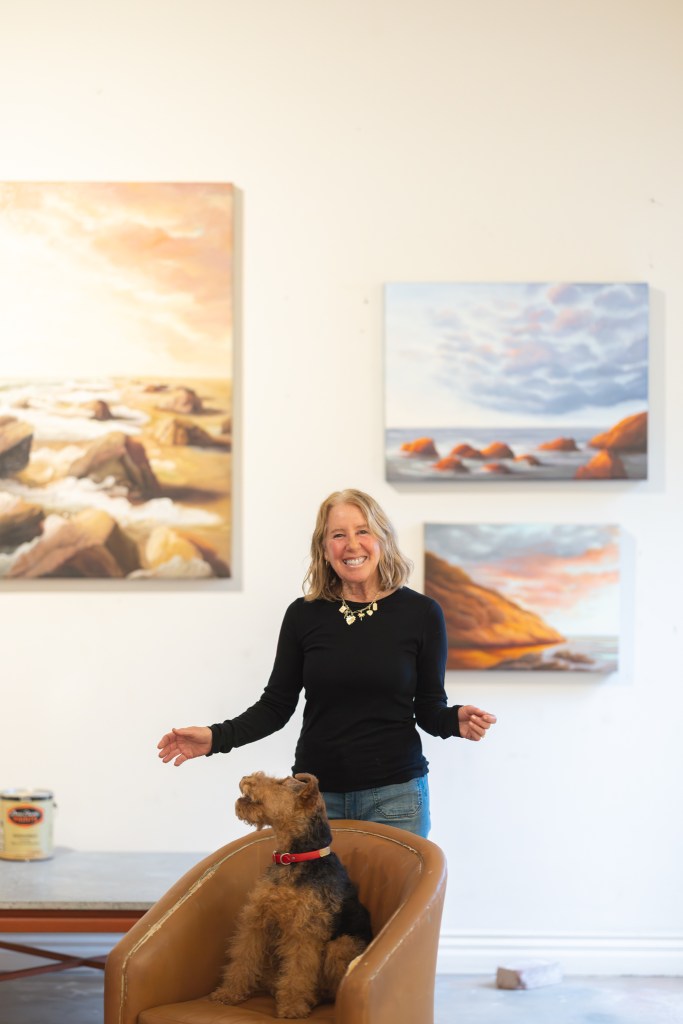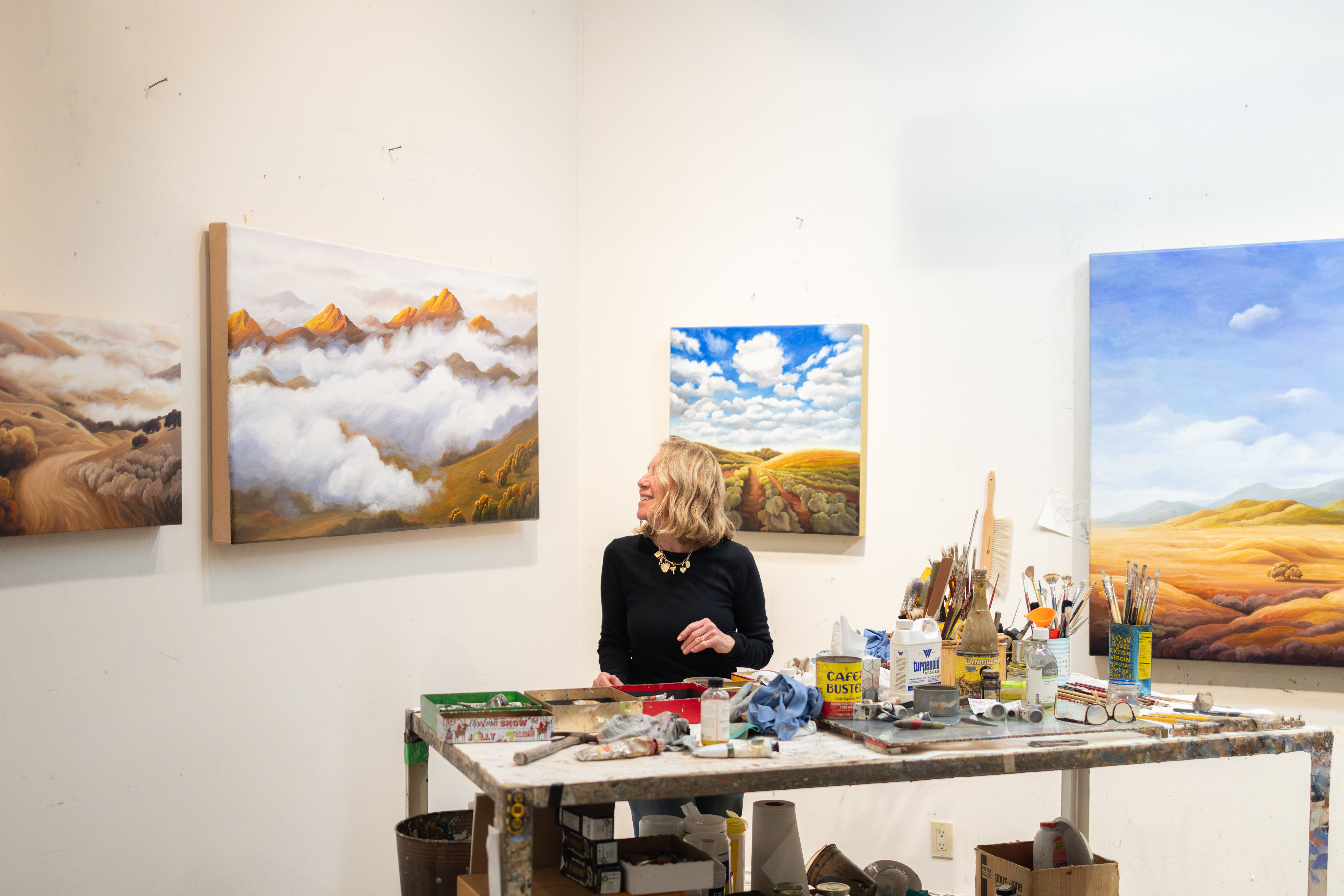 “She has a remarkable ability to interpret nature in all of its vibrancy, movement, and power,” said Nora Hurley. “Her subjects seem to breathe and pulse with life, whether she is painting rolling valleys, coastal hills beneath enchanting skies, dramatic clouds releasing rain, spiraling floral blooms, or crashing surf reaching toward the shore. Each element feels individual and full of character.”