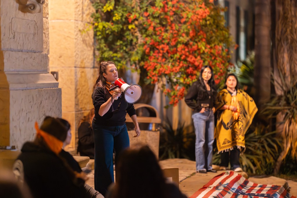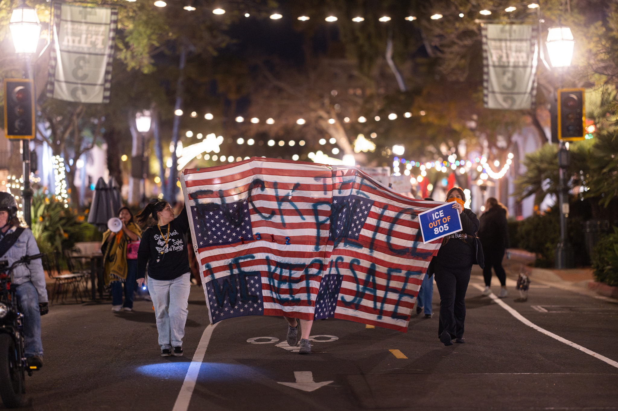 “This morning, once again, we experienced the violence of the state,” Lancaster said. “State-sanctioned violence in the form of ICE, and state-sactioned violence in the form of the Santa Barbara Police Department showing up to cooperate and to collaborate with ICE.”