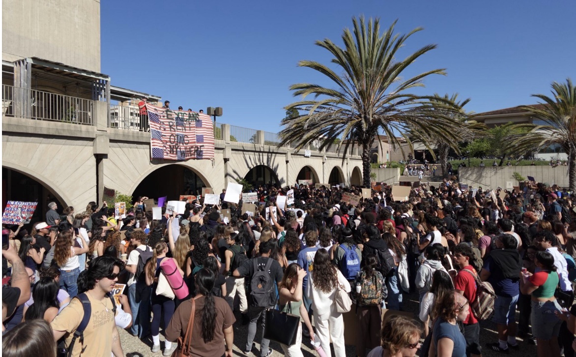 More than 300 UC Santa Barbara students gathered on Wednesday at the campus’s Eternal Flame to carry out a walkout and protest against Immigration and Customs Enforcement (ICE) and current government policies they say endanger immigrant communities in Santa Barbara County.