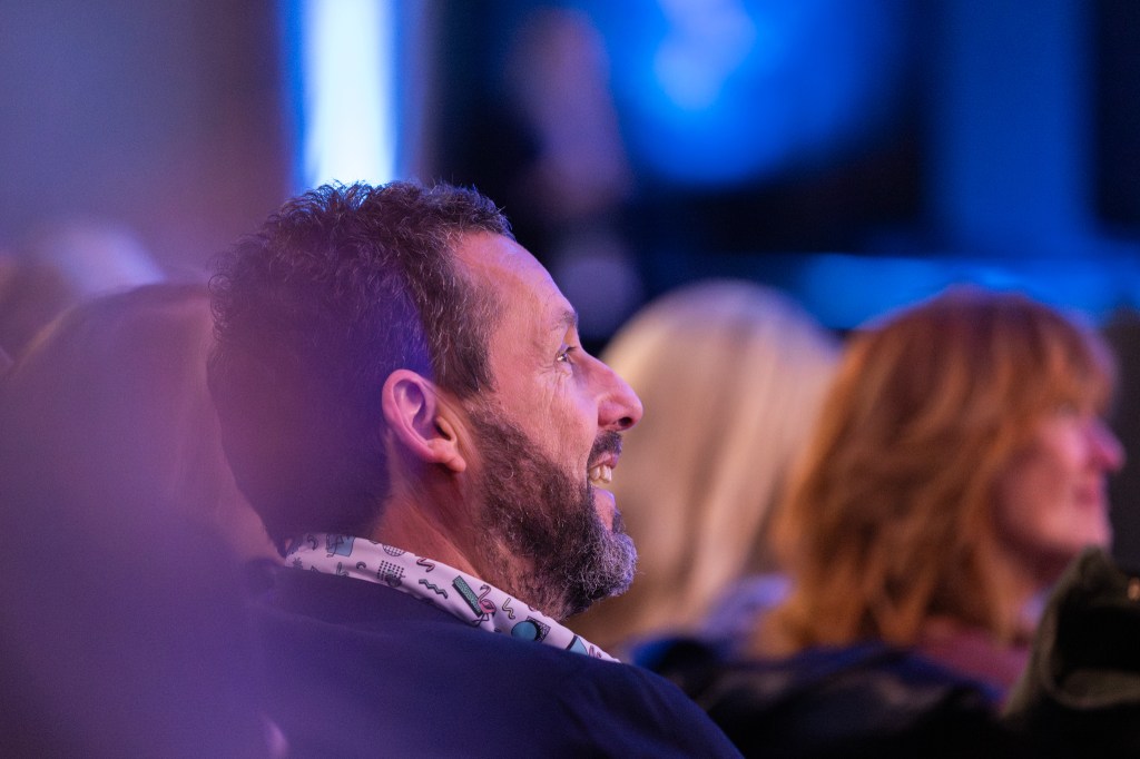 Sandler’s comedic touch is so deft that he makes it look easy, but one of the throughlines of the night was how much work it really can be. “While I’m doing it, I get crazy. I want to make the funniest movie possible, or the best,” he said. “I’m pretty hard on myself — I’m having a great time, but I definitely don’t want to miss any moments. And it does drive you a little crazy. A movie set is the most fun place in the world, and it’s also a high-pressure situation. You’re only giving a certain amount of time, a certain amount of money, to get your stuff done, and you just are running and trying to get it all in there. And it does make you nuts. And in making you nuts, you just take a vacation after  — literally, right when I wrap movies, I just want to go get my snacks and my friends.”