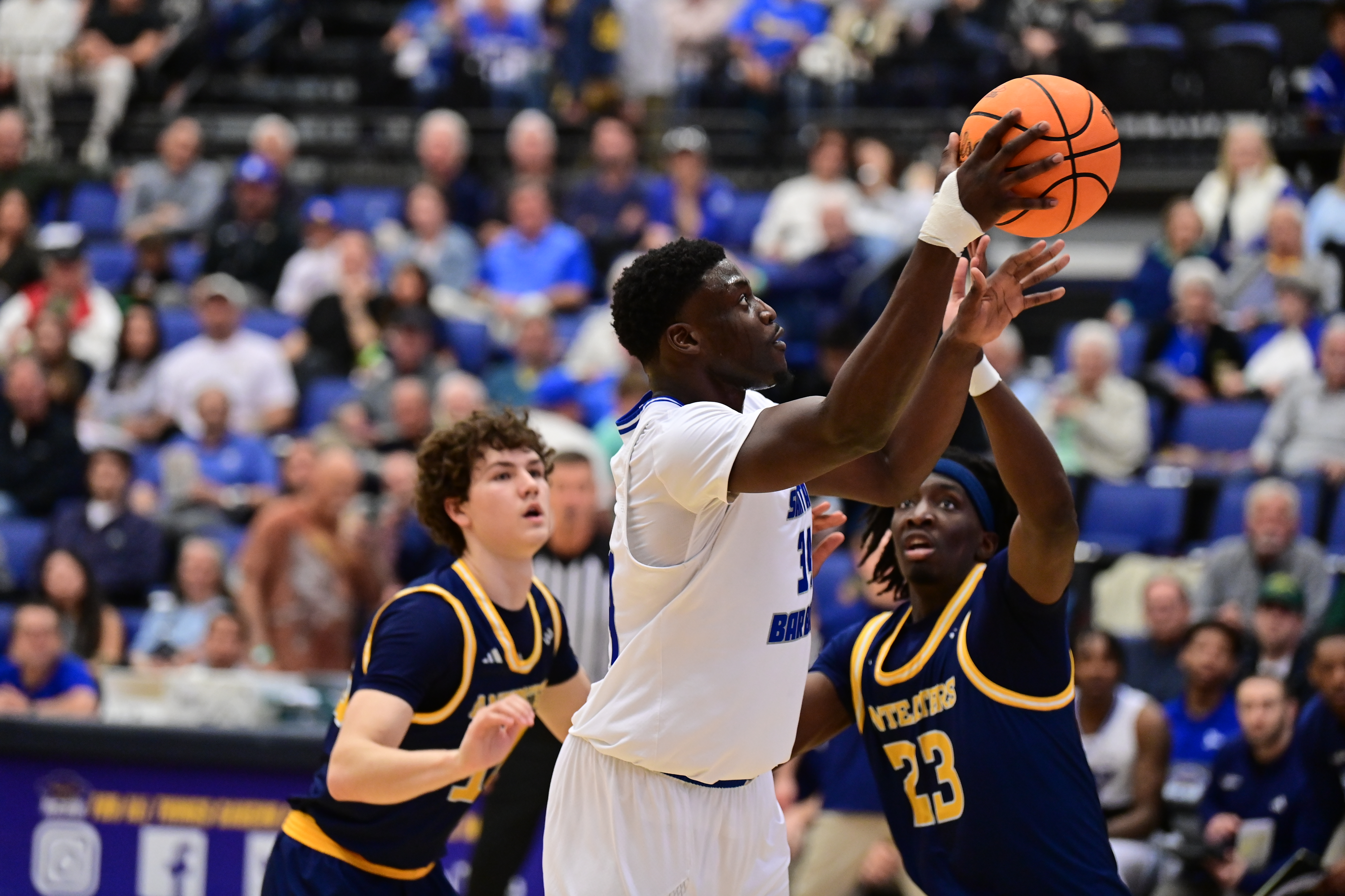 A Colin Smith three-pointer with 4:07 remaining in the half gave UCSB a 26-24 lead. Hosana Kitenge followed with a baseline jumper at the buzzer to push the Gauchos’ advantage to 34-28 at halftime.