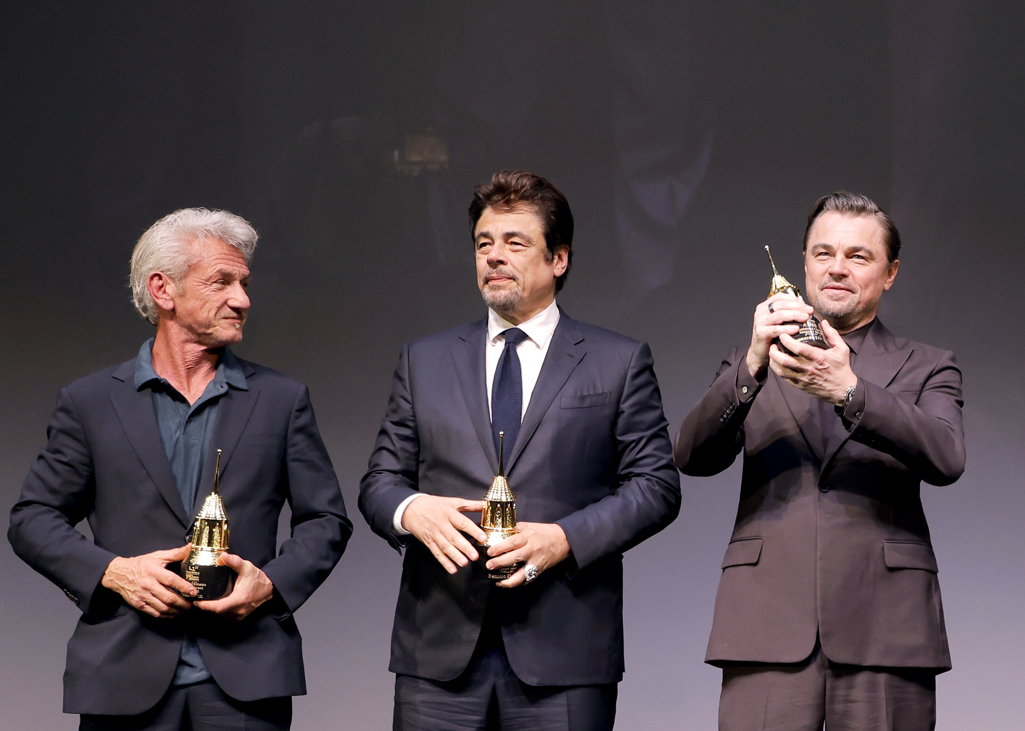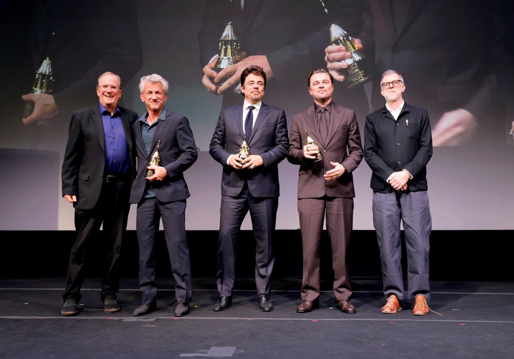 When Leonardo met Sean met Benicio, a special “magic hour” transpired on the Arlington Theatre stage on Monday night, with PT Anderson in the wings, armed with trophies. The central subject was Anderson’s masterful and multiple-Oscar-nominated wild ride of a film One Battle After Another, boasting the singular and collaborative talents of DiCaprio, Penn, and del Toro, in complex and sometimes comic roles flecked in heroism and villainy, and shades in between.