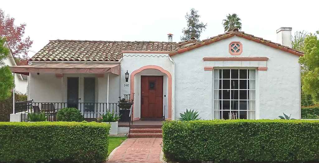 Most homes in Spanish Colonial Revival style have flat stucco walls, topped with gently sloping roofs with red clay roof tiles. The front door, usually wood, is set inside a simple wall opening that is sometimes arched. There may be wooden balconies or decorative tiles to add interest.