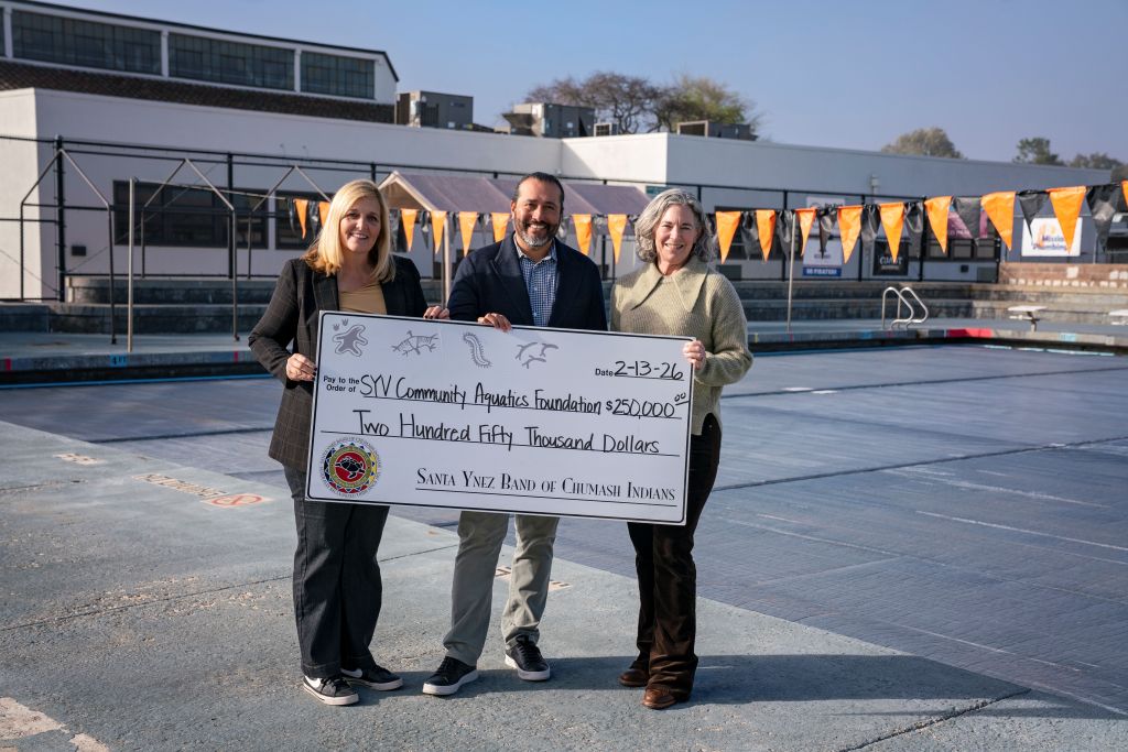 SANTA YNEZ, CA – February 17, 2026 — The Santa Ynez Band of Chumash Indians has presented the Santa Ynez Valley Community Aquatics Foundation with a $250,000 donation to help the nonprofit reach its goal of bringing a state-of-the-art pool facility to students and the local community. The recent check presentation brought together members of the tribe, SYV Community Aquatics Foundation and Santa Ynez Valley Union High School, symbolizing a major step forward in bringing the ambitious, collaborative project to the valley.