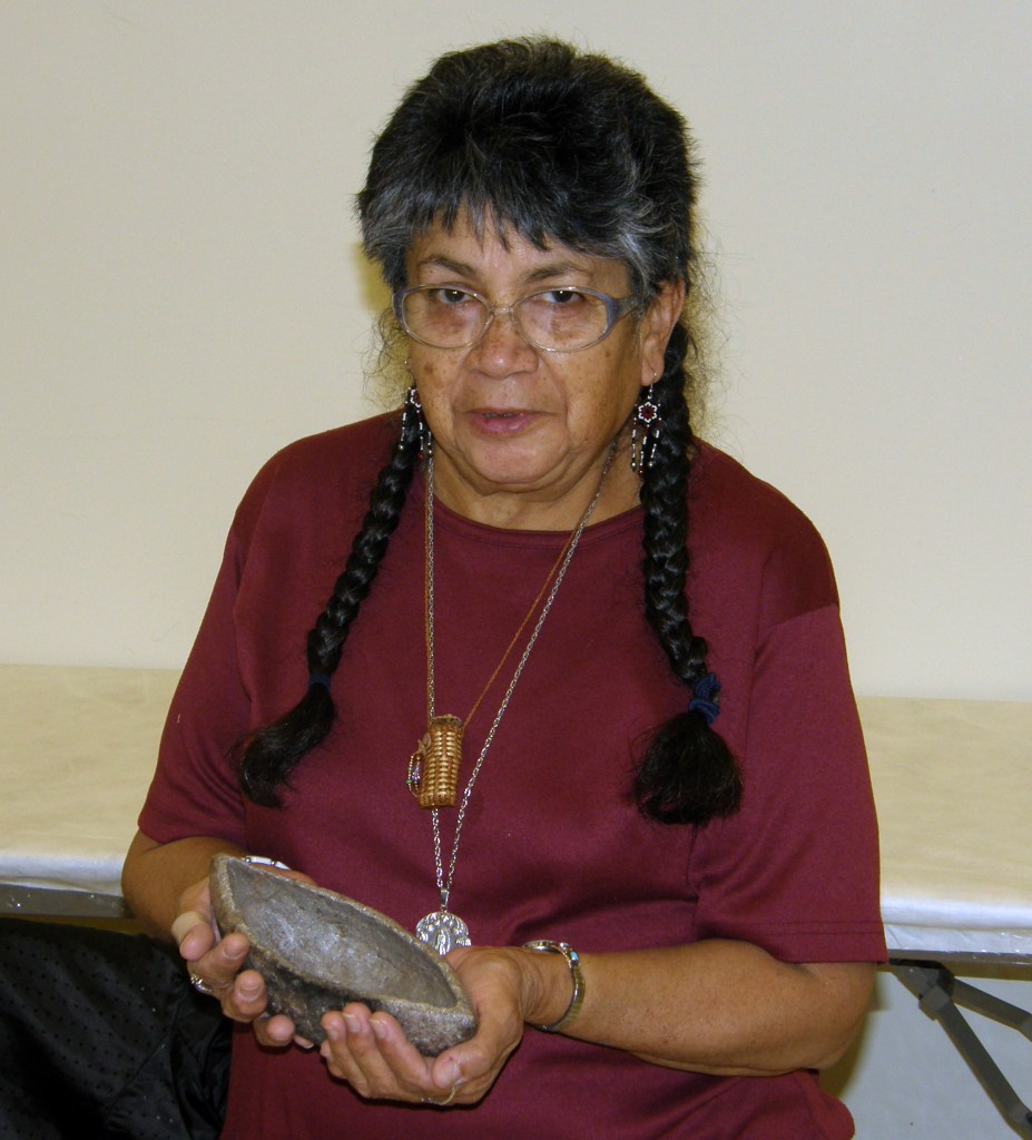 Ernestine in 2008 at the National Museum of the American Indian, where she was consulting on their “Infinity of Nations” exhibit. She is holding a tomol effigy from Santa Barbara’s Burton Mound | Credit: John Johnson