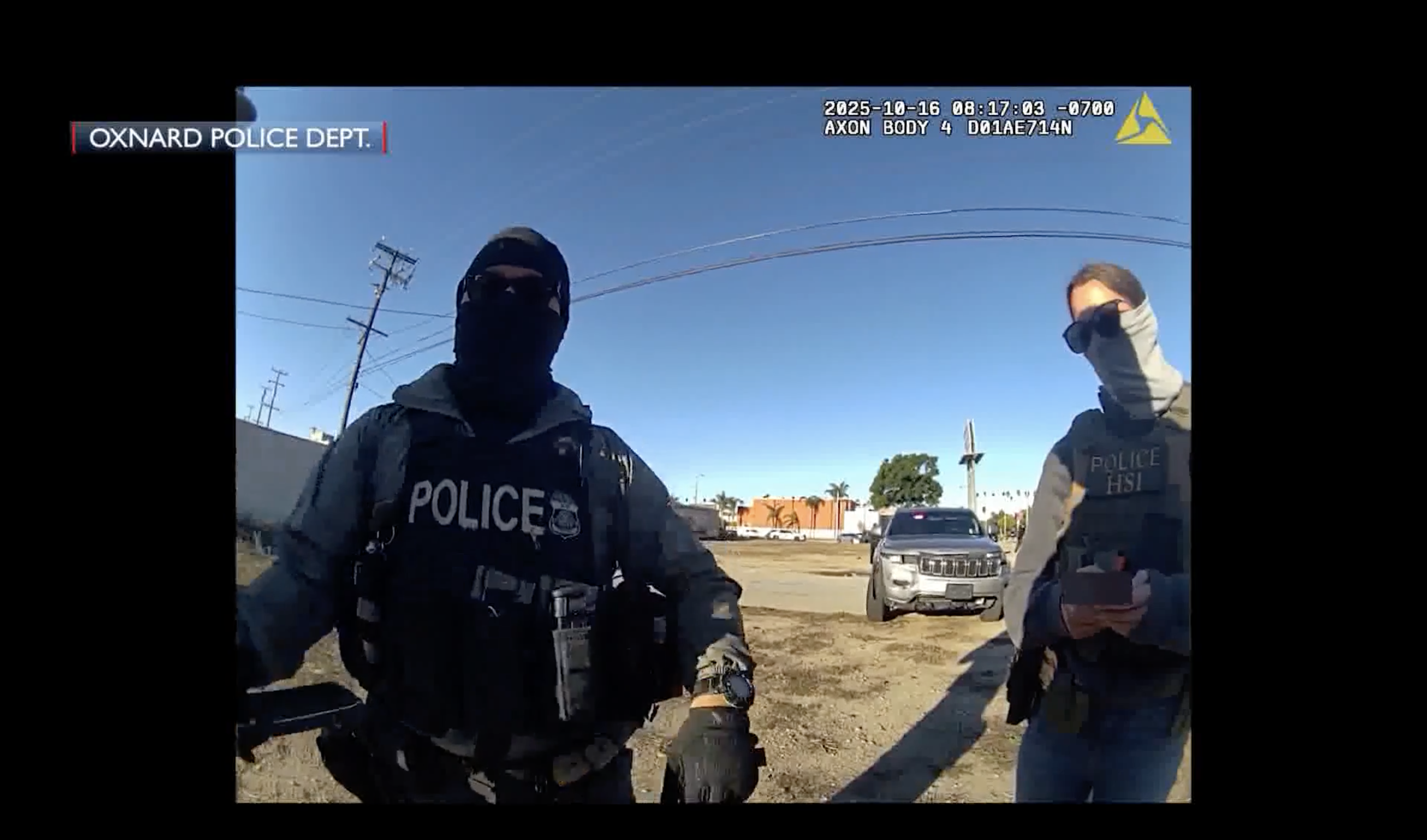 Oxnard Police Chief Jason Benites would note to the media the discrepancy between what ICE agents said happened and what his officers were told happened. Last week’s KEYT report, produced by Andrew Gillies, relied extensively on video footage obtained from the Oxnard Police Department via a Public Records Act request, including body cam video showing the conversation between ICE agents and Oxnard police officers. In those videos, the federal agents blame the collision on Martinez.