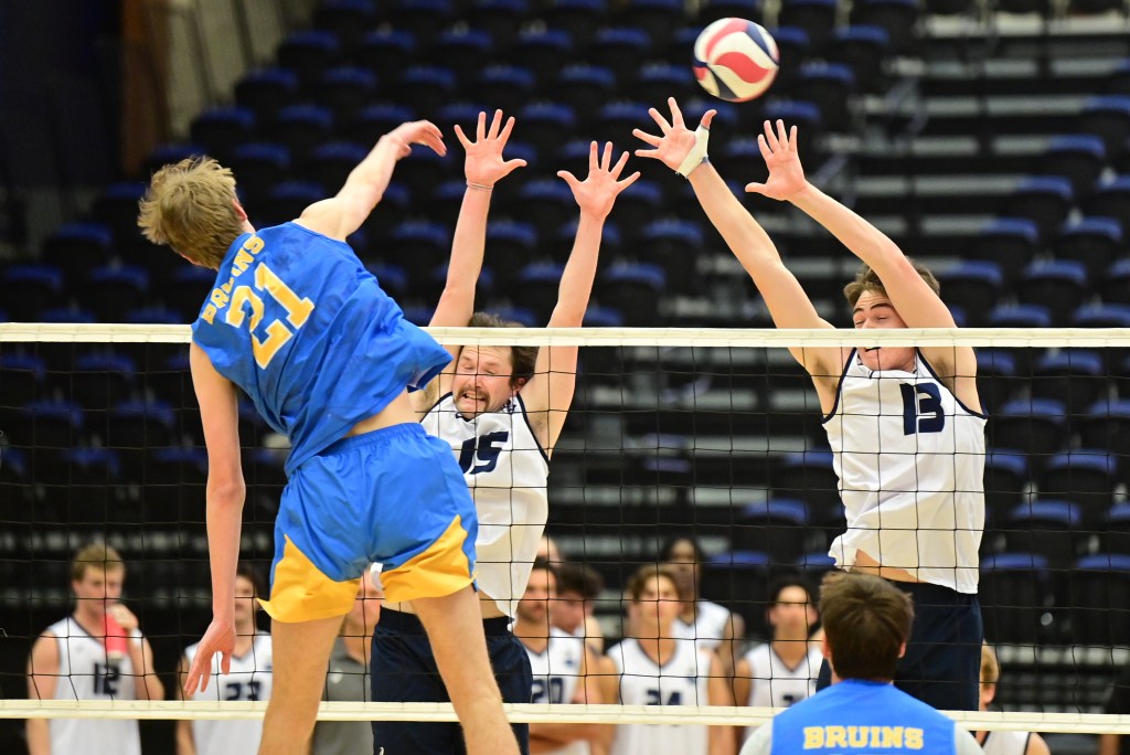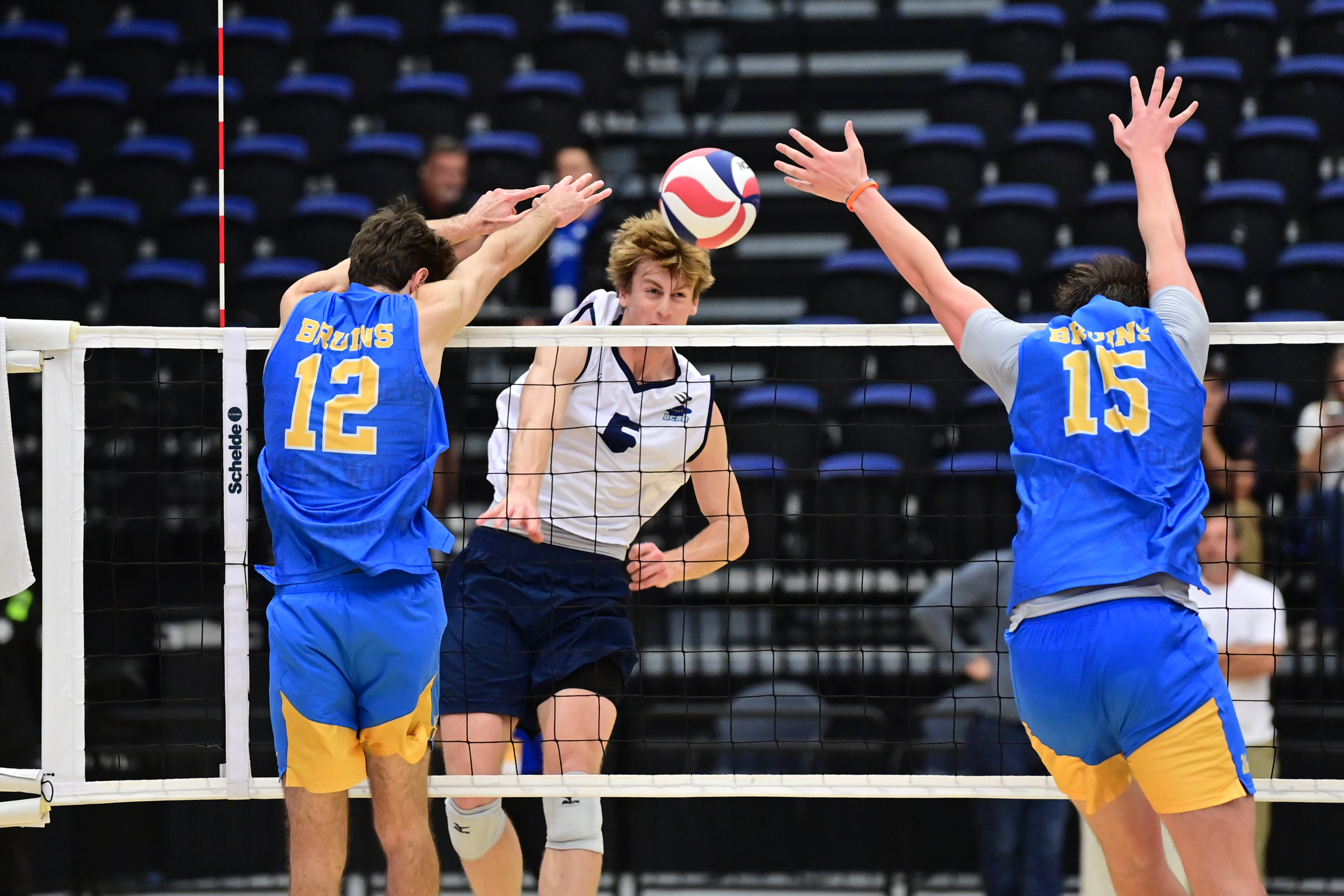 UCLA opened the first set with a 5-1 lead and later stretched the margin to 13-6., but UCSB responded with a 6-1 run to close within 14-12. A block by Ethan Saint and Dylan Pilkvist tied the score at 16-16, beginning a sequence of six additional ties. An ace by Riggs Guy evened the score at 22–22, and a kill from Mikey Denver made it 23-23 before UCLA secured the final two points capped off by a Micah Wong Diallo Kill that gave the Bruins the set 25-23.