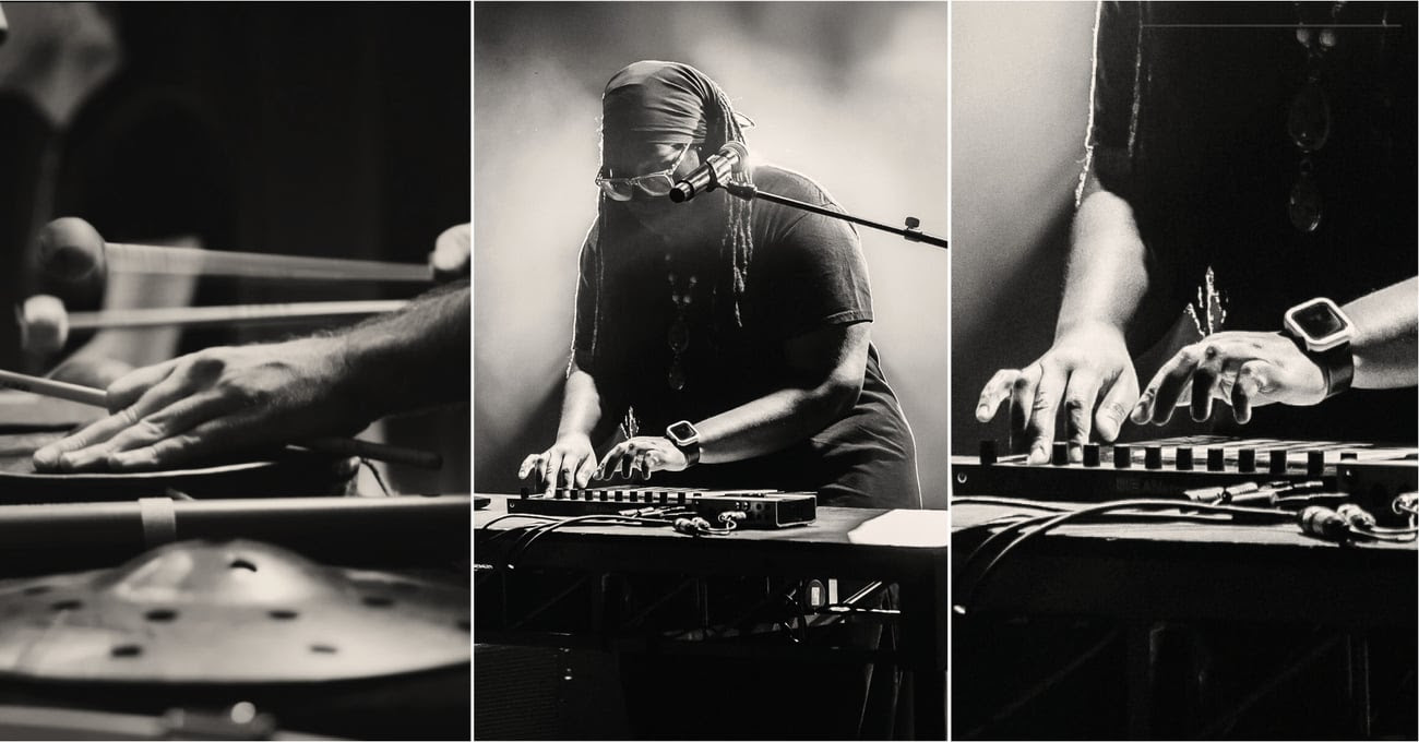 In some circles, the worlds of digital music creation and the old-fashioned methodology — of hitting, plucking, bowing, and otherwise producing sound from physical instruments in real time — occupy their own separate orbits. But the twain can meet, and with artistically fruitful results, as heard at Campbell Hall last week. In this special case, a show hosted by UCSB Arts & Lectures (A&L), the skilled percussionist adventurers in the Chicagoan Third Coast Percussion (TCP) crossed paths with inspired minimalist electronician Jlin (born Jerrilynn Patton).
