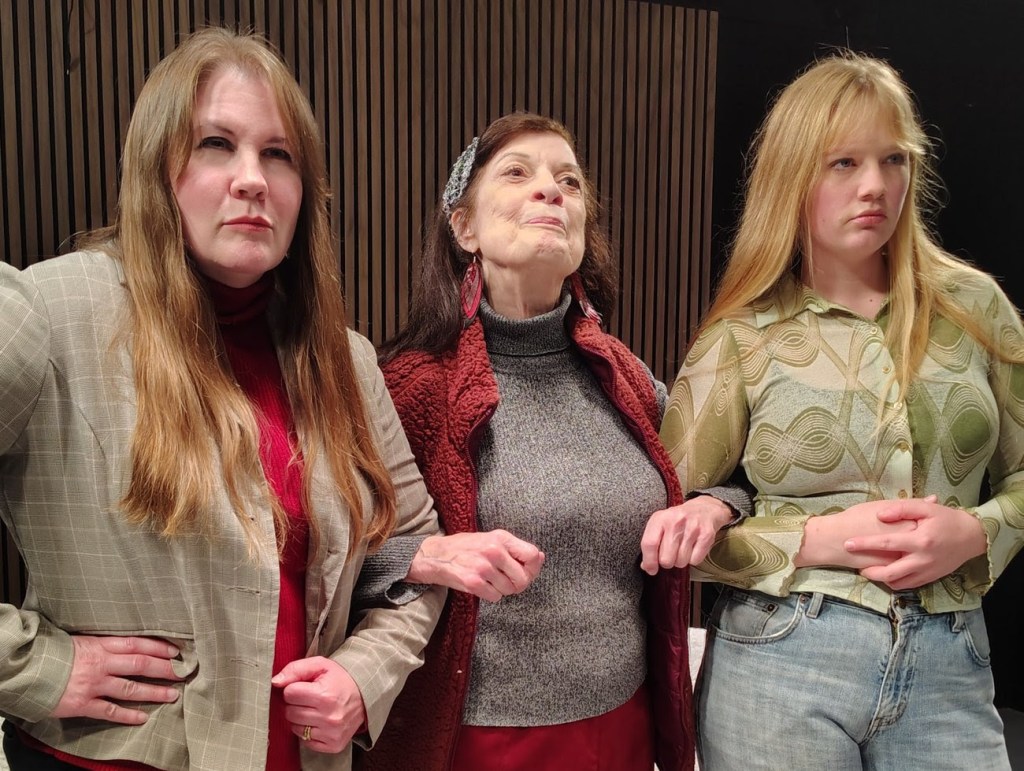 In his queasy green leisure suit and oily, swaggering manner, O’Sullivan is put in an extra-hot seat when his guest Dorothy (Meredith McMinn, whose performance is properly arch) turns out to be a quasi-militant feminist foe. When he mentions warming up to the coming bicentennial, she retorts, “200 years of men subjugating women.” She ends up negotiating a hostage situation in the studio, during which the young accomplice, Cindy (Heather Grosch), arrives and aids in the shakedown. Alas, there is more to the backdrop of the story and a twist of presumed heroism — reminiscent of the switch-up in the film Bugonia. Who is the crazy and/or culpable one here? Only the TVSB audience knows, for sure.