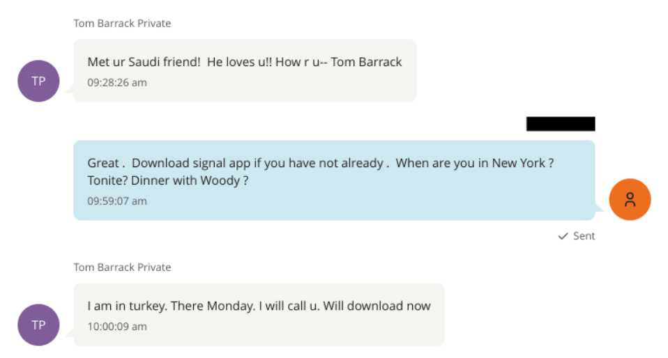 Dialogue between Barrack and Epstein dropped off until 2016 as Barrack shifted his focus to Trump’s presidential campaign. Following a speech Barrack delivered at the GOP convention, Epstein emailed to congratulate him. “Thanks pal,” Barrack wrote back. The next month, Barrack texted Epstein: “Met ur Saudi friend! He loves U!! How r u.”