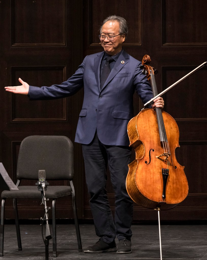 He quoted Casals, who described himself as “a human first, a musician second, and a cellist third.” The same could be said of Ma, as evidenced once again in his latest 805 visitation.