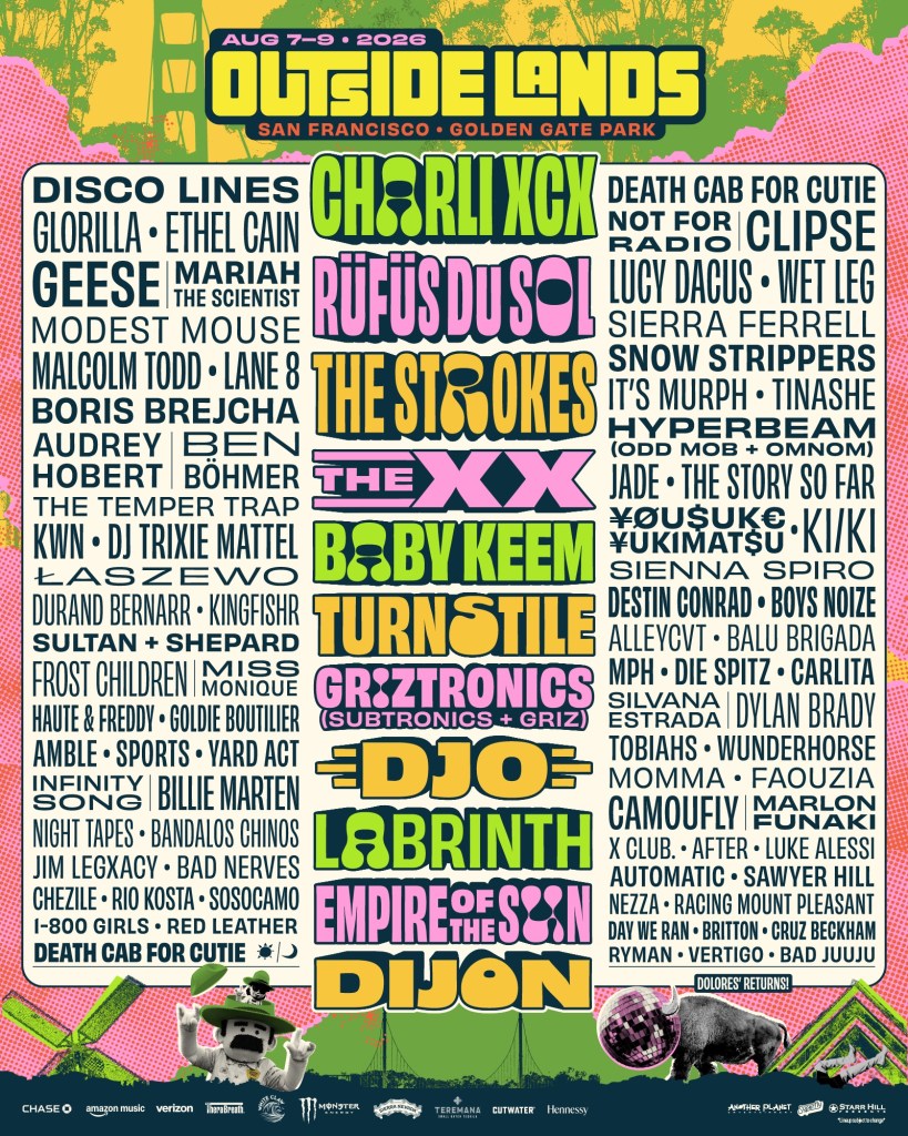 Eager Beavers waiting for the Bay Area’s popular music festival, Outside Lands, were given a full lineup reveal on Tuesday. Taking place August 7-9, San Francisco’s Golden Gate Park will host headliners Charli xcx, The Strokes, and Rüfüs Du Sol.