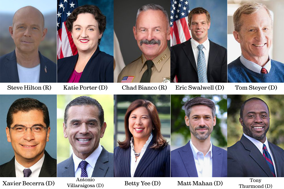 By the Numbers: Nearly two dozen candidates have pulled papers to run. Ten are considered “major” contenders based on past office, fundraising, or name recognition. Their standing in the most recent statewide poll by the nonpartisan Public Policy Institute of California: