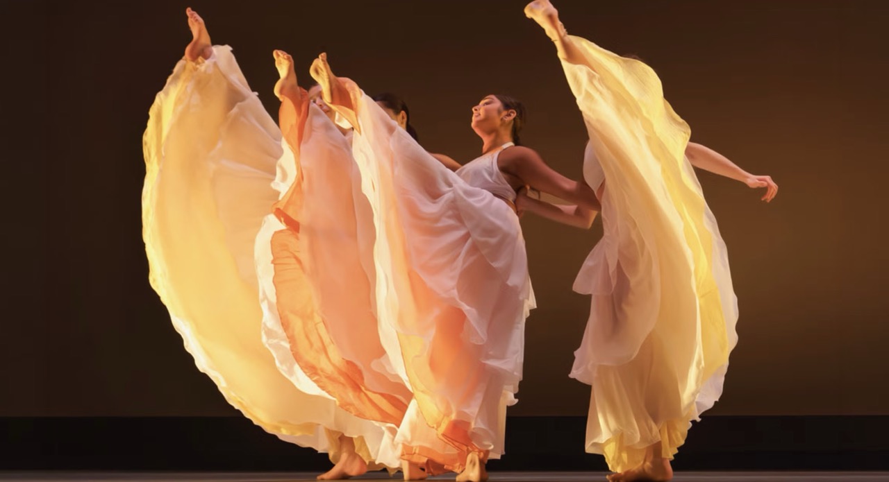 Associate professor Monique Meunier opens the concert with “Aura,” a work for five dancers en pointe that blends classical and contemporary vocabularies. The piece traces a journey from tentative beginnings to embodied strength, exploring how individuality is shaped through shared rhythm and support.