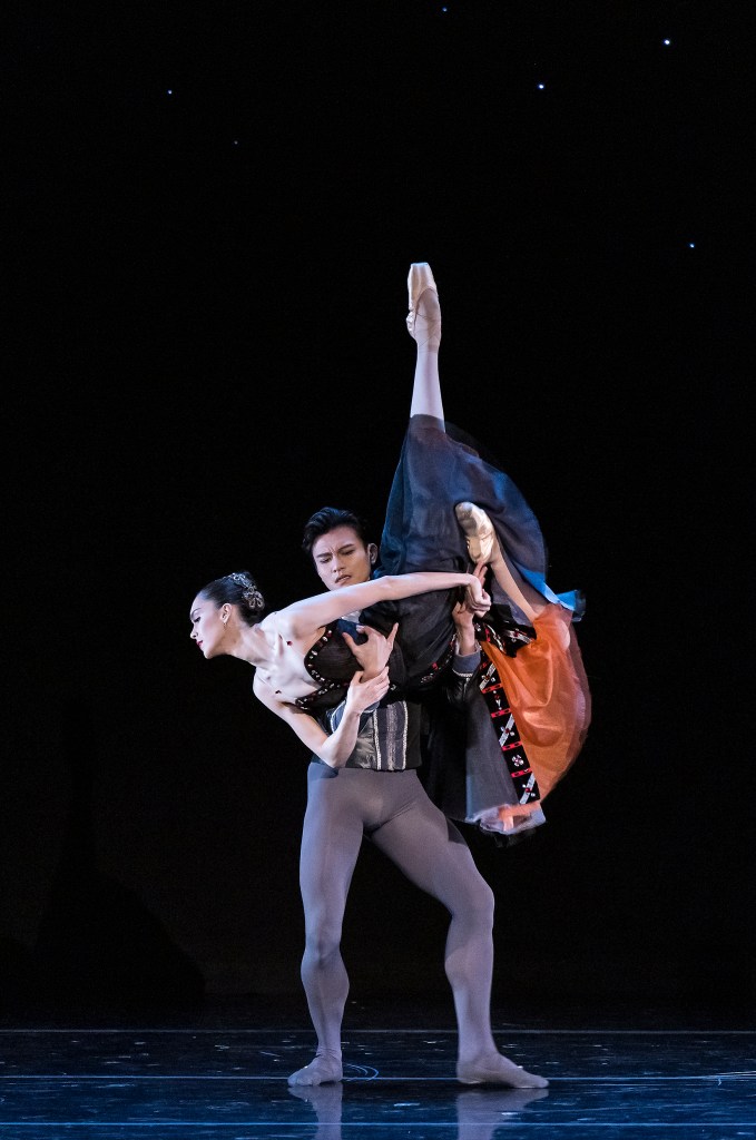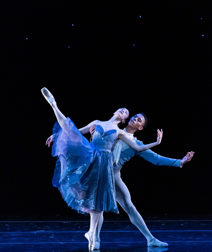 In the Night filled the second half of Wednesday’s program. The audience gasped as the curtain rose, revealing a night sky with tiny star-lights in swirling patterns, reminiscent of Van Gogh’s “Starry Night.” After he created Dances at a Gathering, Robbins reportedly wanted to do more with Chopin’s music, so he created In the Night set to four of Chopin’s nocturnes. Whereas Dances explores the interactions between five couples “just being themselves,” In the Night explores three contrasting aspects of romantic love, from innocent to flirtatious to petulant, under the cover of night. Danced by three couples, all principals from the Paris Opera Ballet, San Francisco Ballet, and NYCB, this breathtaking finale brought Wednesday’s audience to their feet in a standing ovation.