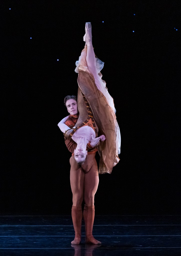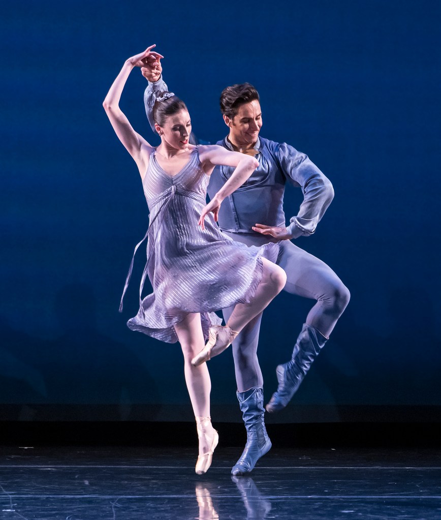 Closing the first half was Other Dances, set to some of Chopin’s familiar Waltzes and Mazurkas, played by Elaine Chelton. Peck said of Other Dances, “It’s probably one of my favorite Jerome Robbins dances to do. It’s a pas de deux that I’ve done now for many years, but every time it’s different, and I find new things that I love about it.” Originally choreographed for the legendary dancers Mikhail Baryshnikov and Natalia Makarova, Peck danced this work with her husband, NYCB principal dancer Roman Mejia.