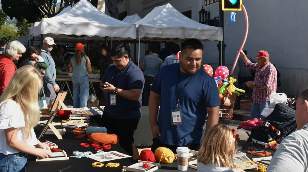 In addition to the large asphalt art installation, the project will include new artwork-wrapped planters, string lights painted by high school students with VADA, custom Santa Barbara–inspired paper picado displays on State Street, and a community loom at the weekly Farmers’ Market held at the same intersection.