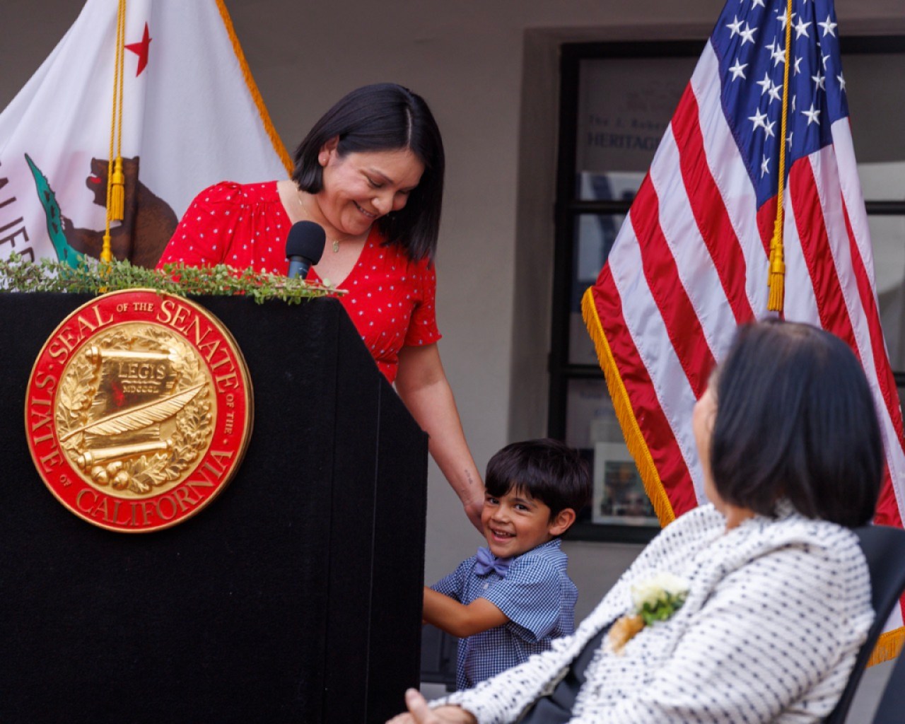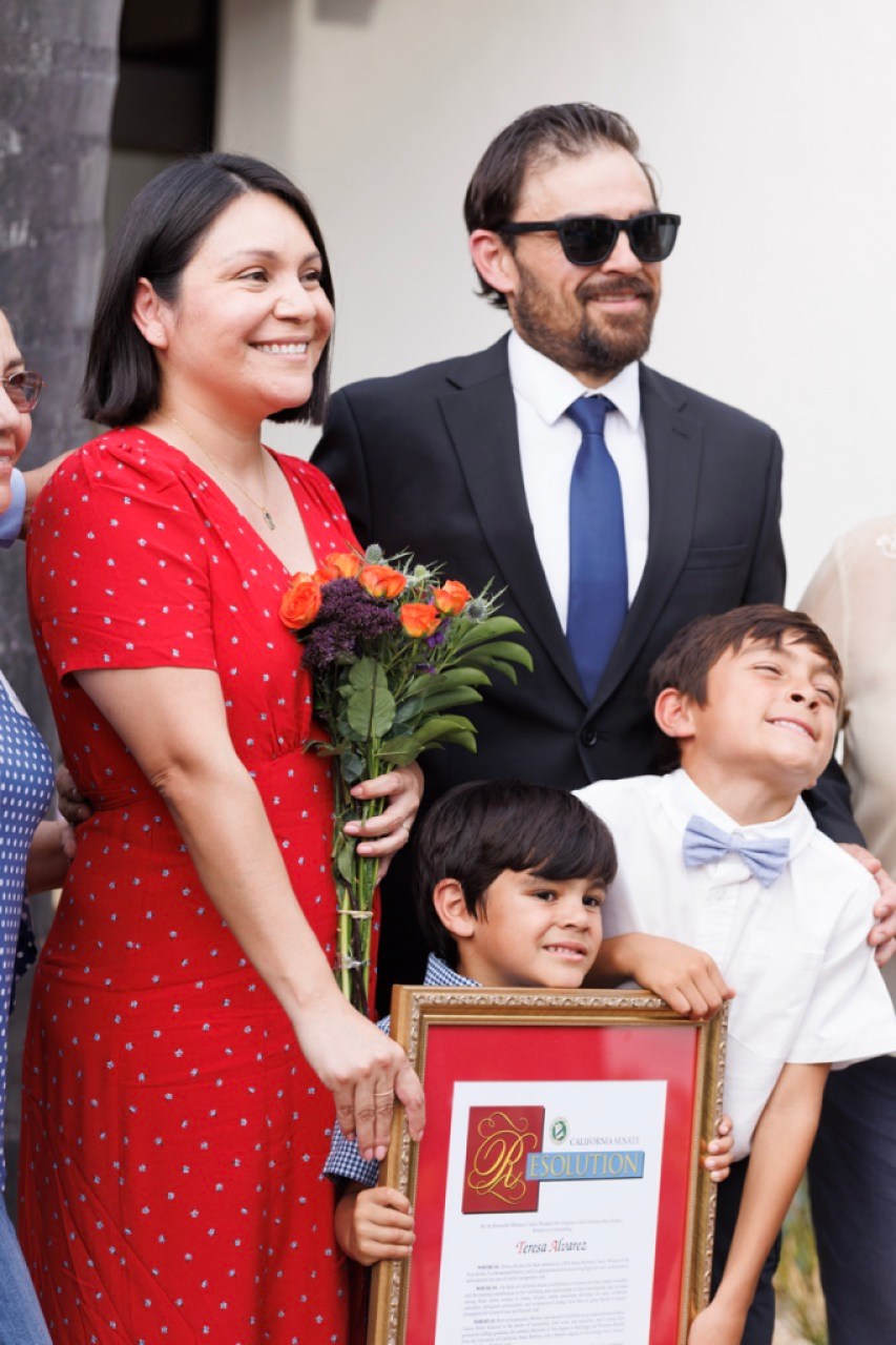 “As someone who was once an undocumented immigrant, I know firsthand how much opportunity, support, and community matter,” Alvarez said. She went on to say the work that she does is “deeply personal.” During her speech, her son Nico ran up to Alvarez at the podium, where they shared a heartfelt embrace and he stayed peeking from behind the podium at the smiling crowd.