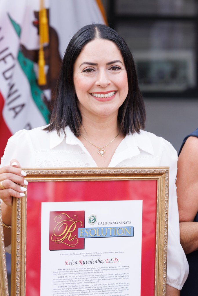 For two decades, Dr. Erica Ruvalcaba has dedicated her life to helping others get a seat at the table through her work as a professor at Allan Hancock College, Emotional CPR, as a San Luis Obispo First 5 Commissioner and a longtime organizer of Latinx Action Day at the State Capitol.  As the daughter of field workers, she strives to provide others with the resources to build a bright future for themselves.