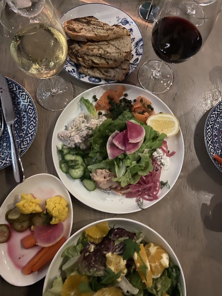 This adorable yellow-umbrella’d all-day café in the heart of the Theater District strikes the perfect balance between “casual bite” and “upscale gourmet.” Dress up your night with the House Pickle Plate, an eye-catching assortment of house-fermented and spiced veggies, and the House Fish Plate, a beautiful collection of house-smoked trout, hot-smoked and cold-smoked salmon, labneh, cucumbers, pickled onions, and sourdough. These refreshing dishes pair beautifully with their crisp Austrian grüner veltliner on tap. All of their entrees are winners, but a favorite of mine is the perfectly cooked smoked half chicken with black lentil-feta-tomato salad, green zhoug sauce, and a tomatillo sauce. Or you can go more straightforward with the classic Daisy cheeseburger and fries. Either one makes an ideal match with a glass of Stolpman’s delicious red blend, La Cuadrilla. There’s even a thoughtful kids’ menu when you’re out for an evening of family fun or an afternoon matinee. A delightful cappuccino accompanied by one of their fantastic daily desserts, such as the Tahini chocolate-chip cookie with local McConnell’s ice cream, is the sweetest way to end a night worth savoring.