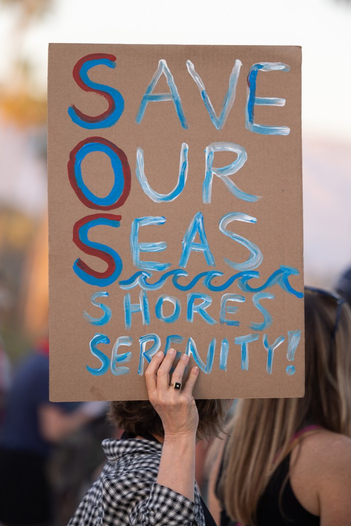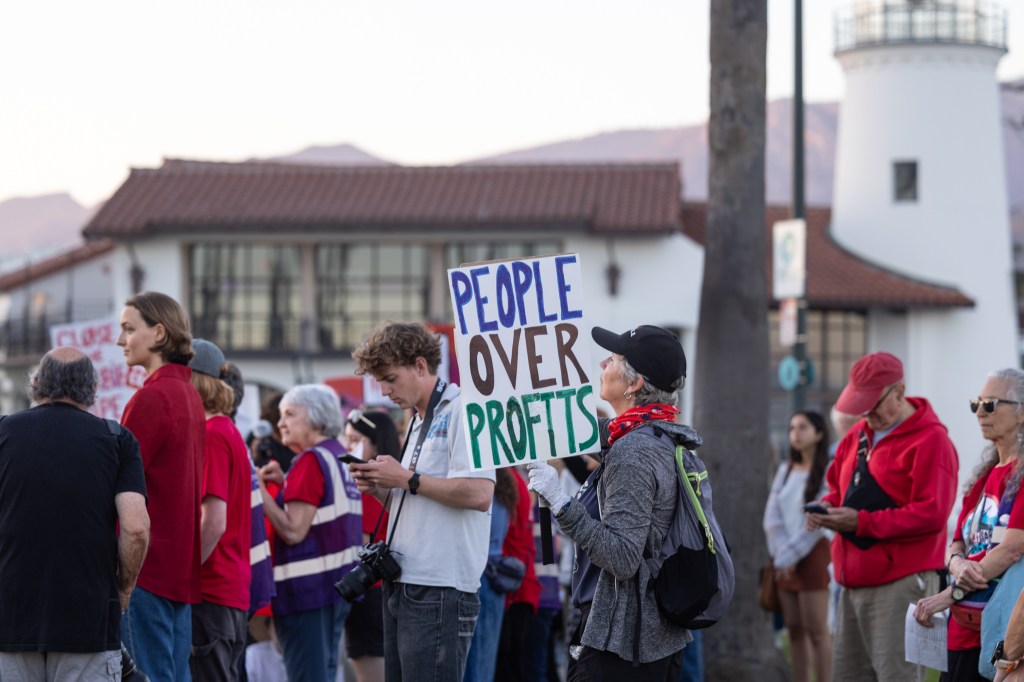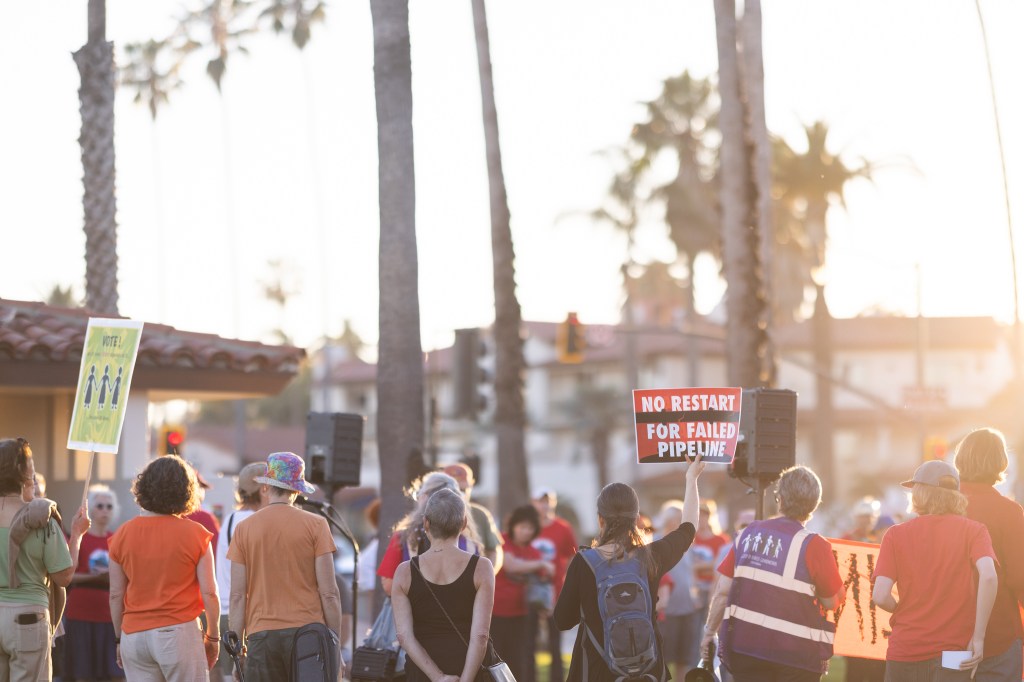 Speakers and vigil organizers spanned generations, from the Society of Fearless Grandmothers to the UC Santa Barbara Environmental Affairs Board, and the Santa Barbara High School Environmental Club. At the edge of the crowd, in front of his mother, stood a little boy no older than four. With a red shirt that fell past his knees, he gripped a protest sign bigger than himself: “NO RESTART FOR FAILED PIPELINE.”
