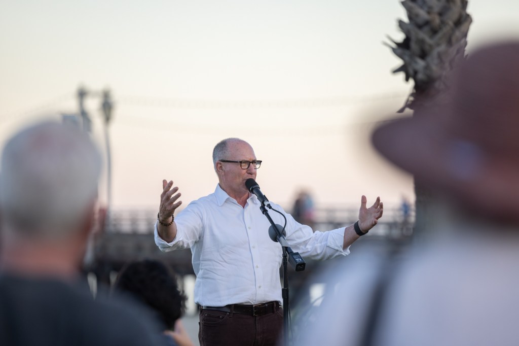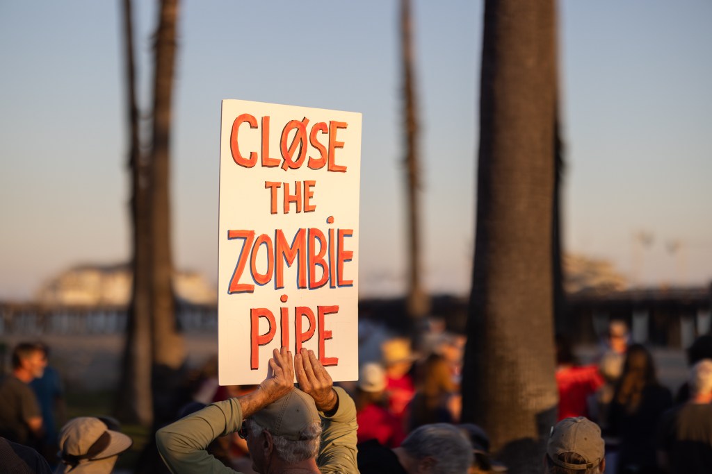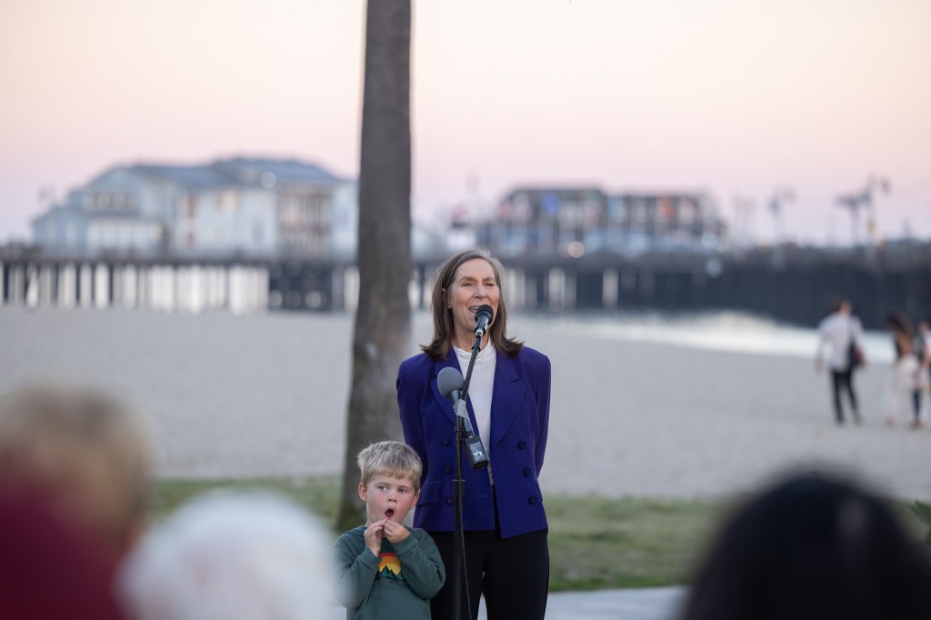 County Supervisor Joan Hartmann, who attended with her young grandson, put the pipeline fight in a broader context of climate risks. “We know what climate change is bringing to our county and to our planet,” she said, citing record heat, wildfire threats, and sea-level rise. “We will not stand for it — not on our coast, not here, not now.”