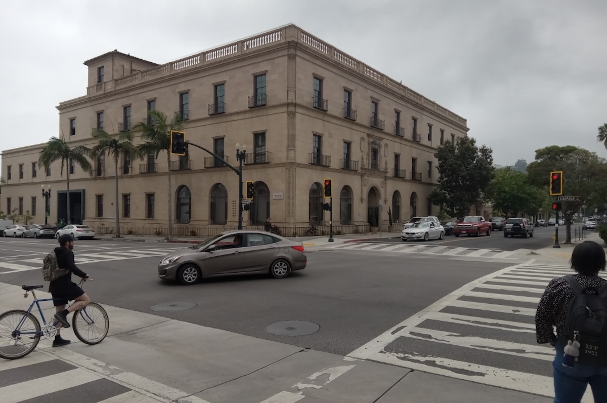 I can’t remember when I first stopped seeing that giant sandstone Spanish wedding cake of a castle that dominates the corner of Chapala and Canon Perdido streets, right in the sclerotic heart of our downtown Santa Barbara.