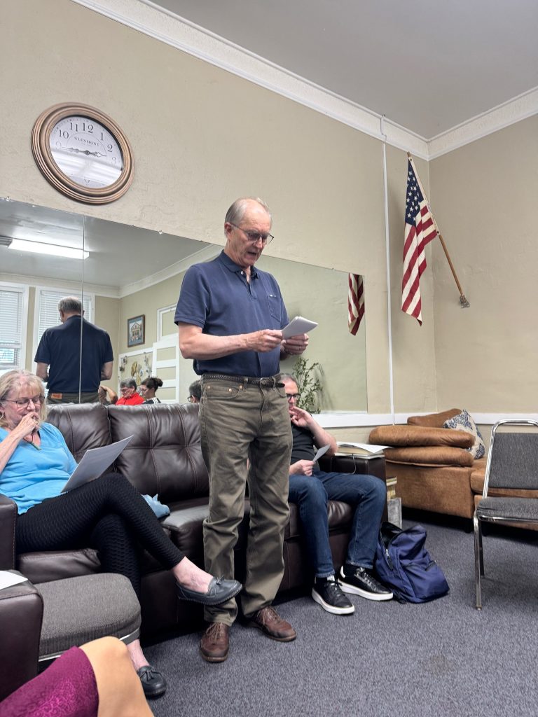 What I found was a welcoming group of diverse people, both poetry enthusiasts and budding poets, in a large, comfortable room with chairs and cushy couches. The atmosphere was of friends learning about poetry and commenting on the poems. At least two people shared their own poetry. Library Assistant Tara Patrick brought copies of well-known poems to discuss, but was pleased that participants brought their own favorite poems to pass out. “The idea is you don’t have to be a poet,” she said, “but we love for people to read their own work. Poet César R. Verrier enjoys bringing new drafts of his work to the group for feedback. “You can test how it resonates with other people and work on it,” he said.