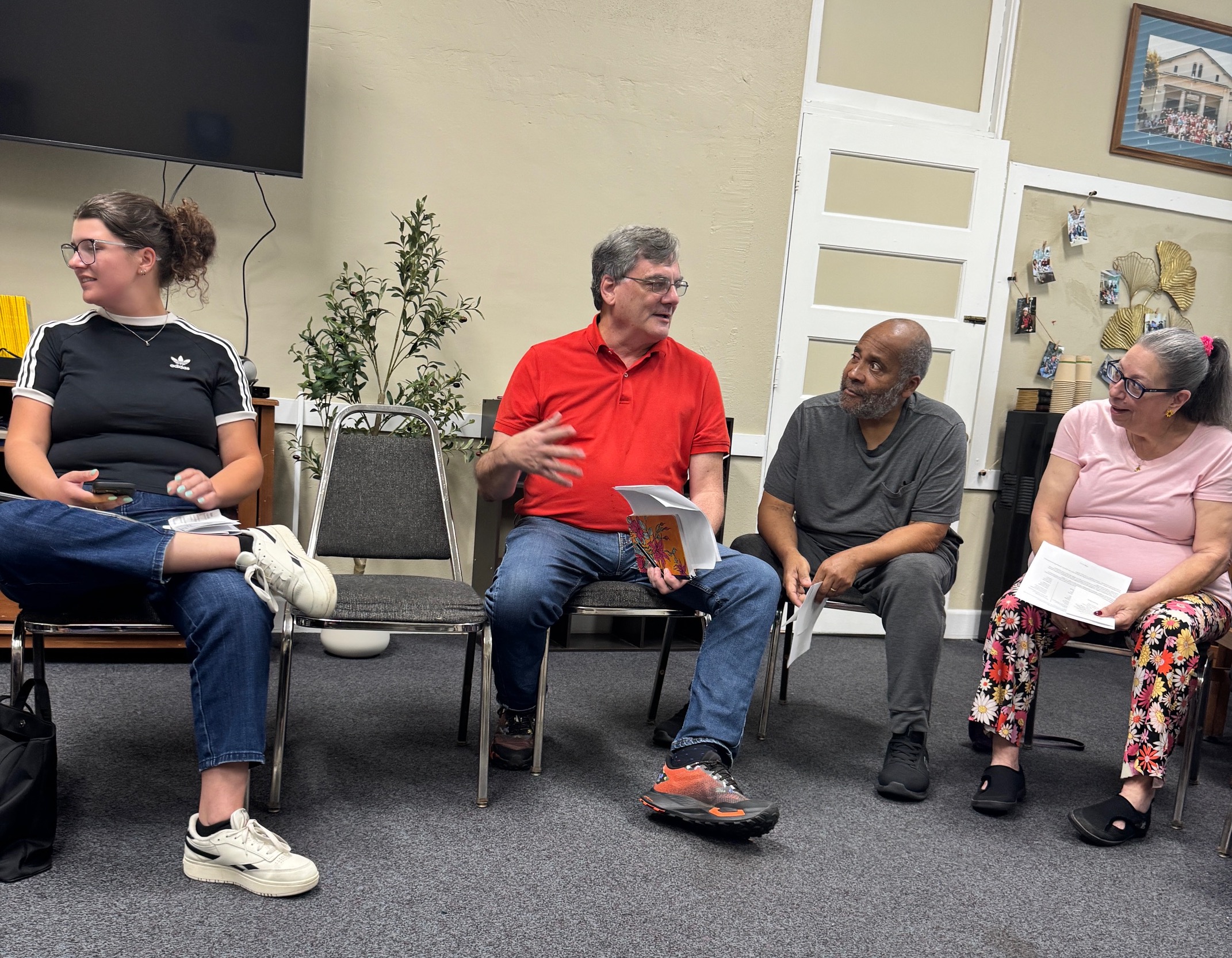 What I found was a welcoming group of diverse people, both poetry enthusiasts and budding poets, in a large, comfortable room with chairs and cushy couches. The atmosphere was of friends learning about poetry and commenting on the poems. At least two people shared their own poetry. Library Assistant Tara Patrick brought copies of well-known poems to discuss, but was pleased that participants brought their own favorite poems to pass out. “The idea is you don’t have to be a poet,” she said, “but we love for people to read their own work. Poet César R. Verrier enjoys bringing new drafts of his work to the group for feedback. “You can test how it resonates with other people and work on it,” he said.