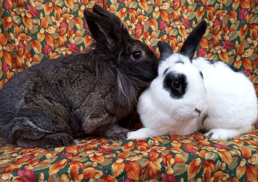 This handsome pair of boy bunnies are named after characters from “Charlie & the Chocolate Factory.” Augustus is the large lionhead and for all his size he is the gentlest and most polite fellow. Mike is a white and black rhinelander mix. He is also gentle and easy-going, but stand back when he gets space to run, zoom and binkie! They both love to explore and race around when given free run and are also devoted bondmates to each other.