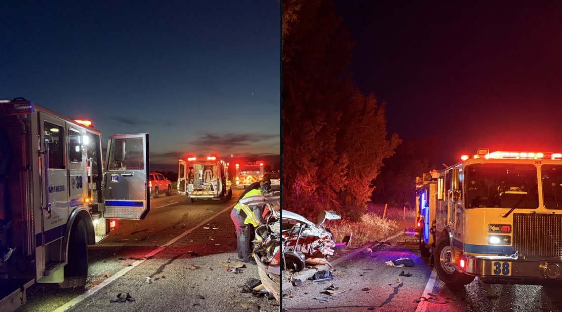 A man was extricated from a sedan and transported to Santa Barbara Cottage Hospital with major injuries following a two-vehicle crash on northbound Highway 101 in Gaviota on March 29, 2026. | Credit: Santa Barbara County Fire Department