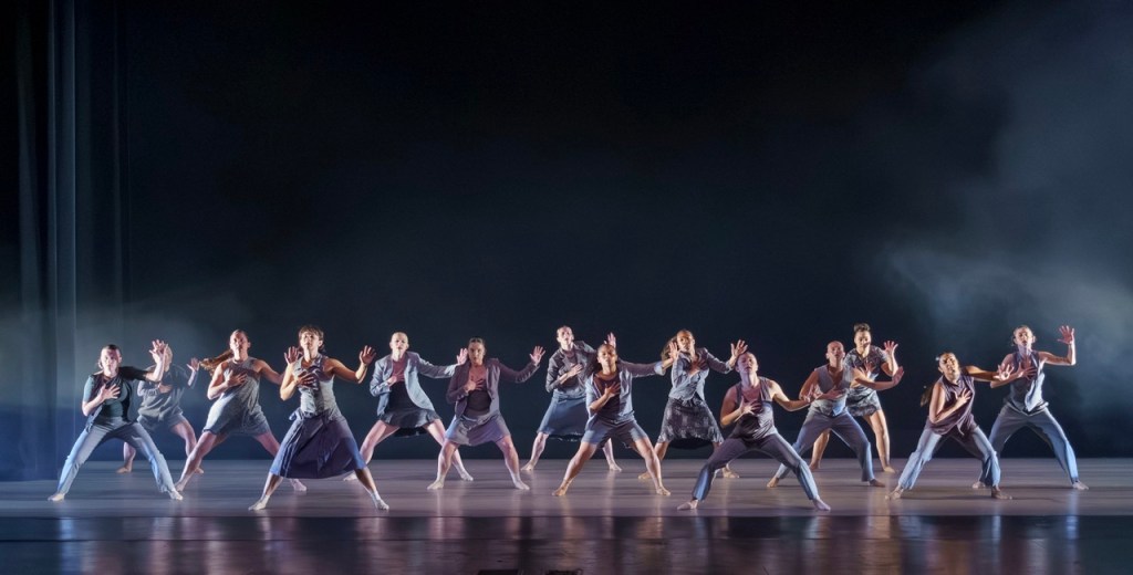 “Sonance,” choreographed by Seda Aybay, presented the entire ensemble of 14 dancers. Wearing gray, the group stood towards the back of the stage, not facing the audience, as one dancer broke away from them, becoming the catalyst in a chain reaction of individual realizations “regarding today’s unsettling climate,” as written in the program. Stagings with smoke accompanied by a soundscape incorporating a Malcolm X speech (most notably with the words, “Who taught you to hate yourself… Who taught you to hate your own kind”) underlined the political urgency of the piece. The transformation from unison movements to reciprocal expression evoked a sense of collective humanity.