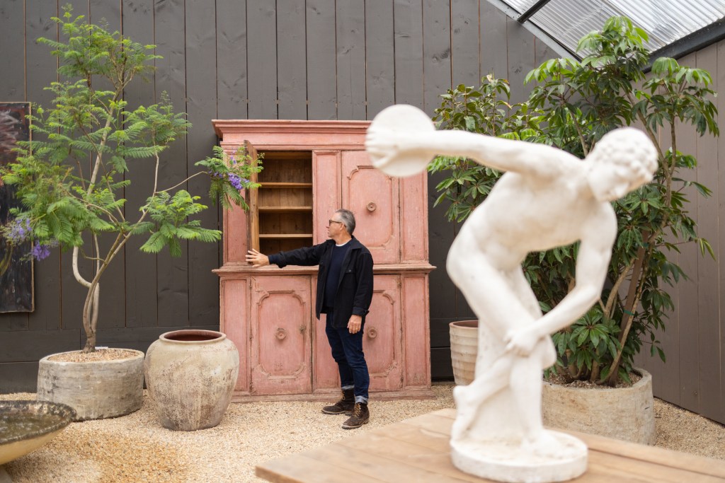 Shane Brown admiring a pink cabinet he sourced, one of the many unique pieces available at The Well Gardens. | Credit: Ingrid Bostrom