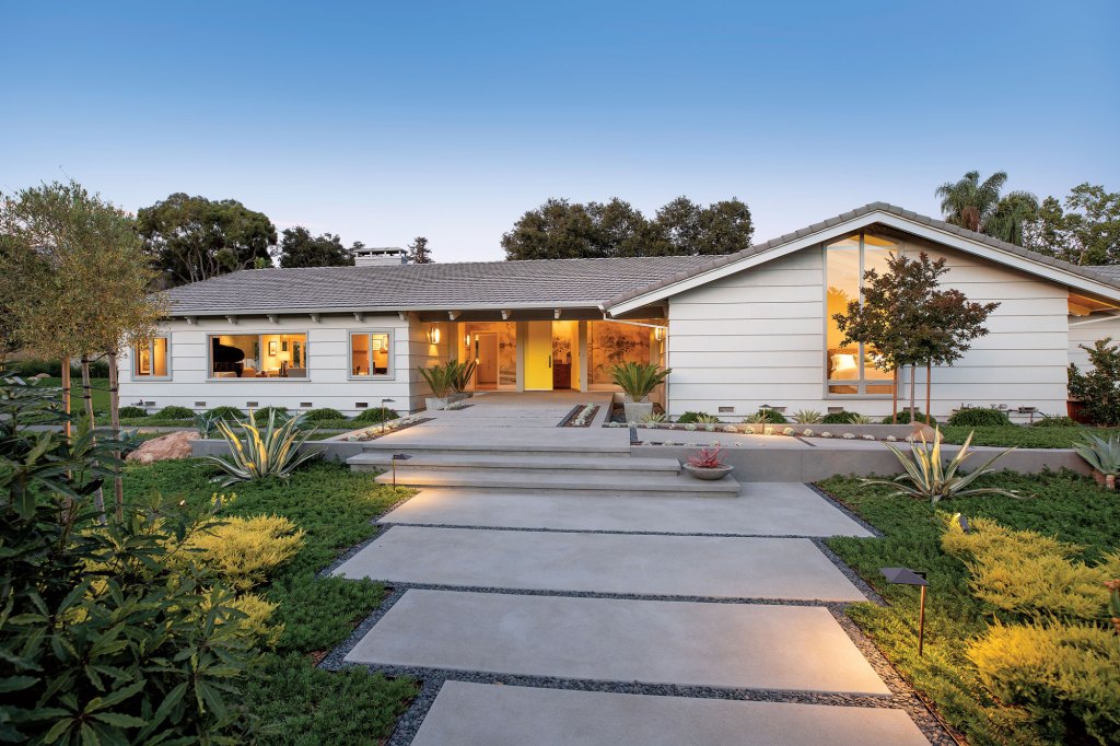 MIDCENTURY MONTECITO: Built on a flat half-acre parcel among the neighborhood’s historic hedgerows, this home had gone through a few minor renovations since it first went up in 1963. This time, its new owners opted for a major strip-down to the studs. Overhauls included new plumbing, electrical, floors, finishes, and improvements to the foundation. Upgrades to the office, guest room, and a reimagined bedroom suite remained true to the midcentury modern character and its overall spacious feel. The new kitchen and dining area connect seamlessly to a quiet, comfortable outdoor living space that takes in the mountain view. Architecture and building design by Britt Jewitt and Dale Pekarak. Landscape architecture by True Nature. Hardscaping by AJ Precision Concrete.