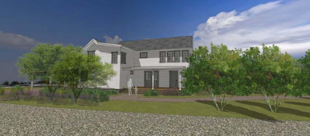 - Repair the farmhouse’s existing fenestration, including windows that have been covered over. A three-part window on the east elevation’s first floor and a double sash window on the south elevation would be replaced with multi-light French doors to improve accessibility.