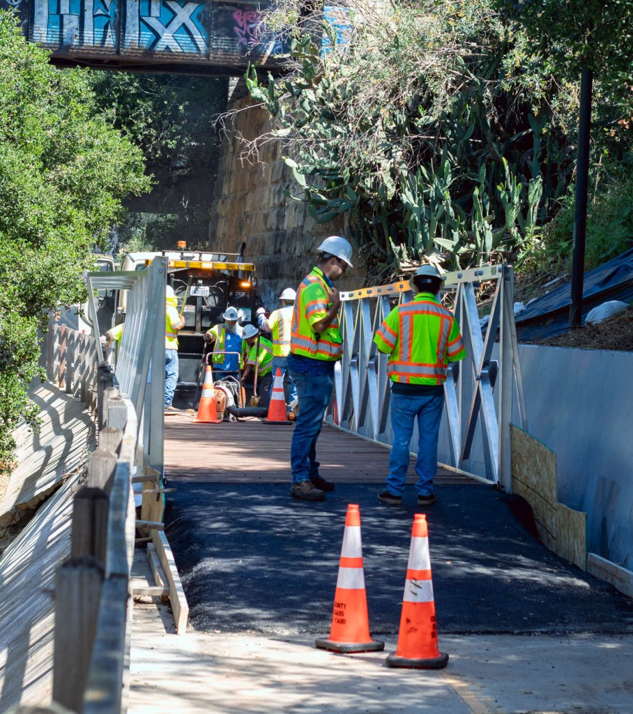 It was originally expected that the section would be closed through the summer, while county engineers worked on a plan to stabilize the undermined section of the path. But the loss of such a critical connection led to public outcry and county action. The Public Works Department began work on the bridge a few weeks ago, and first needed to test it to ensure it was safe for public use.