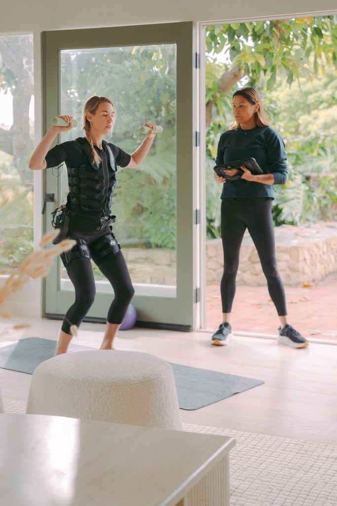 EMS Body Atelier is a project of the wife-husband team of Colleen Ferguson and Andy Maser. Ferguson, a former ballet dancer, owns a Pilates studio and learned about EMS from a couple of her clients, who urged her to try it. She initially shared my skepticism of EMS, but for different reasons. Although she swims, surfs, and plays tennis, Ferguson hadn’t done much strength training. But after giving birth to the couple’s two young children only 16 months apart, Ferguson had experienced pelvic floor issues that nobody had been able to help her with. The first time she did EMS, she told me, she felt immediate relief from her symptoms. “That felt like a miracle.”