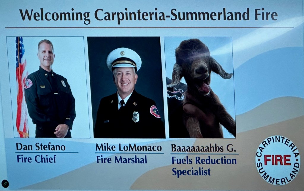 I found that the project was a collaboration between the Carpinteria-Summerland Fire Department and the California Grazing Company, owned by Michael Klain, a full-time fire captain. The purpose of goat grazing is to eliminate excess vegetation for fire prevention; therefore, Klain works closely with fire departments, in this case, with Carpinteria Fire Marshal Mike Lomonaco, who secured a grant for this particular project through CalFire and the Santa Barbara Fire Safety Council.