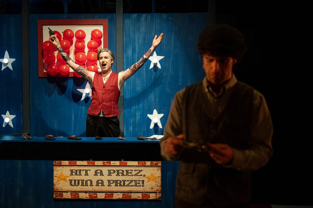 Stephen Sondheim’s Assassins, presented by Out of the Box Theatre Company, is a series of musical vignettes set in a purgatorial carnival of the damned. The cast of oddballs, all based on historical figures, have one common motivation — they’ve decided to shoot the U.S. president. Directed by Samantha Eve, Assassins is a labor of love with a strong cast of local musical-theater all-stars.