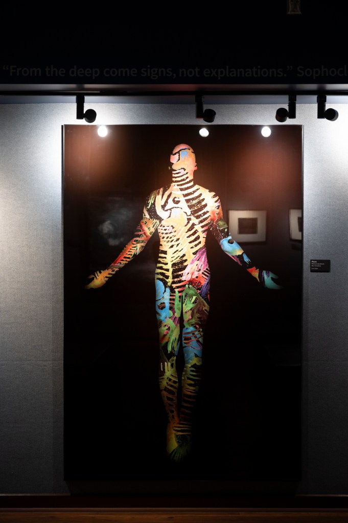 It is indeed the right word for a show that pairs Vigon’s Flotsam & Jetsam — an expansive impression of the sea that includes found objects, paintings, linocuts, large-scale prints, video, and dimensional collages — with Ellis’s Lobospheres: The Lost Souls of Point Lobos — a 20-year exploration that consists of abstract, impressionistic photographs of textures, silhouettes, and mythical figures discovered in the wave-carved rock forms of Point Lobos, California.