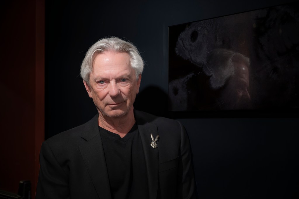 The show’s name, Aquean, is a made-up word that sounds like aqua or aquatic, with just a little twist, not unlike the exhibition itself. Vigon — who built his career at the center of rock history, designing more than 200 iconic album covers for artists including Fleetwood Mac, Tom Petty & The Heartbreakers, Counting Crows, Bonnie Raitt, and Eric Clapton, earning induction into the Album Cover Hall of Fame in 2020 — also designed a special logo for the show.