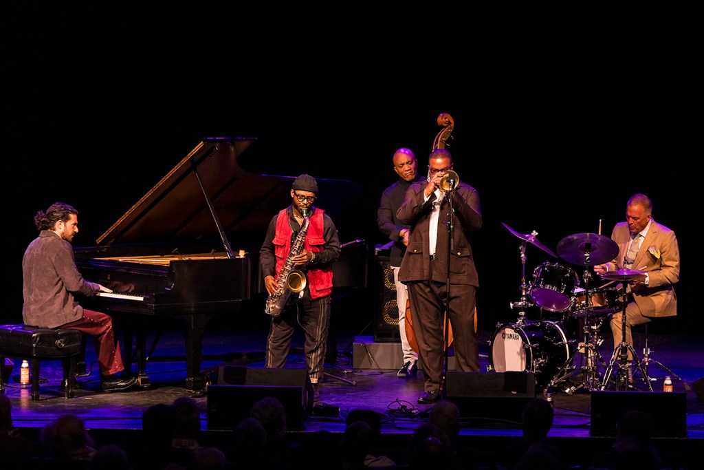 Blanchard deployed his somewhat irritating — to these ears — effects-laden horn sound, and to what end? The trumpet, in its pure state, is a beautiful thing. Even in his electric band eras of the ‘70s and ‘80s, Miles played the pure horn, albeit very occasionally with a wah-wah. But Blanchard’s notes and phrases asserted the taste and jazz historical understanding that has always marked his playing, and writing.