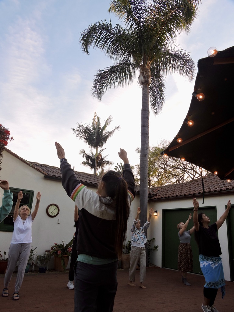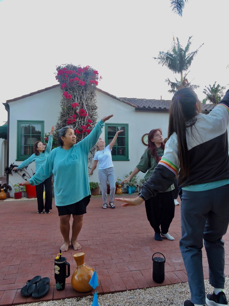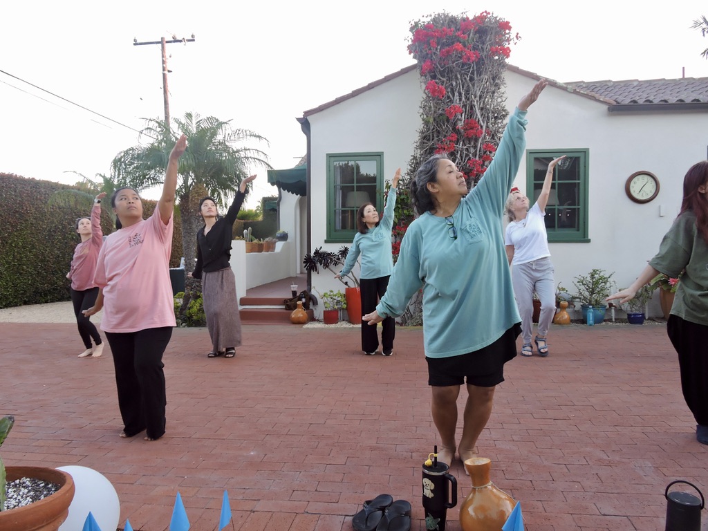 At the front, Angelita Eller corrected the group’s movements, reminding them where to place their palms and when to follow the line of an arm with their gaze toward the sky.