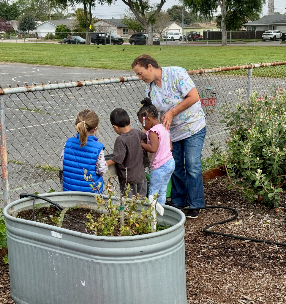 Also in Lompoc, at Just for Kids Preschool, teachers Juana Zarate, Silvia Hernandez, and Rosa Herrera have built garden-based learning into their classrooms, getting students to care for plants and engage with nature early.