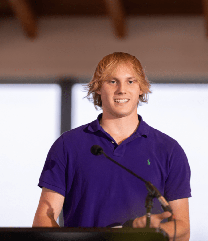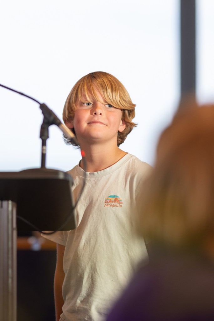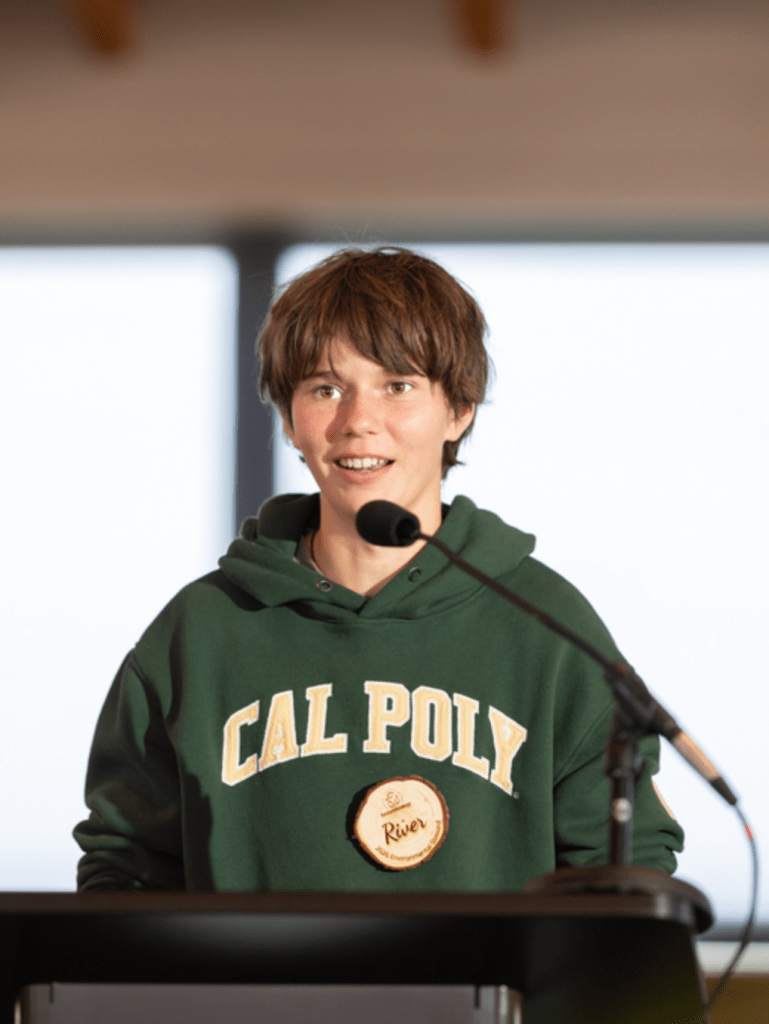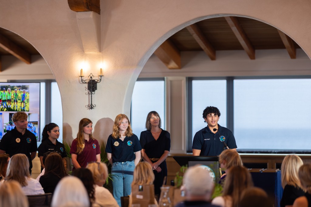 Kicking off the luncheon, 2025 awardee and Dos Pueblos High School student Jackson Simmons-Furlati spoke about his hydroponic towers, which have produced more than 7,000 meals while saving 37,000 gallons of water. Simmons-Furlati is also part of a United Nations–accredited, student-led group raising awareness about the harms of single-use plastics. Who are unsurprisingly not at these group forums, he notes, are the corporations producing these plastics.