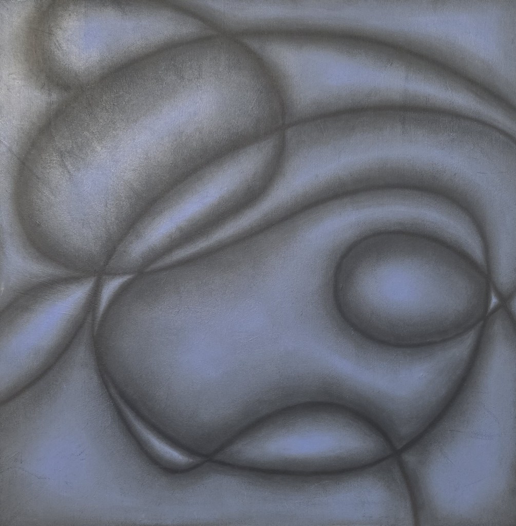 Abstraction is largely absent from Re-Encounter, with the exception of Jada Harper’s Blue in the Brain series. Her liquidy abstractions involved amorphous shapes or cellular forms adrift or afloat in patches of color, in such pieces as “Ambiguity” and “Green Envy” — the title of which tips us off to potential meaning and metaphor.