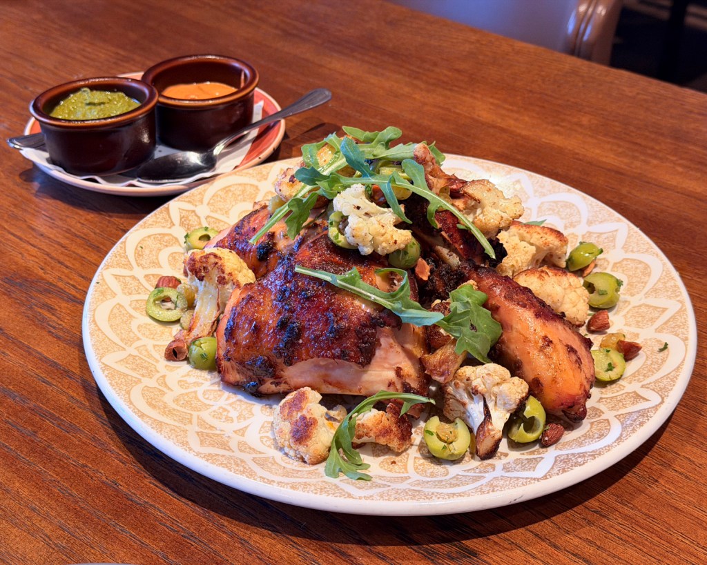 Entrees include a spit-roasted half chicken, which, McNee explained, “People in the know go crazy for.” The tender meat is complemented by a harissa and a charmoula sauce, which is rubbed on the chicken before cooking and served on the side. Complemented by golden raisins, olives, toasted almonds, and cauliflower, the dish is a well-rounded crowd-pleaser.