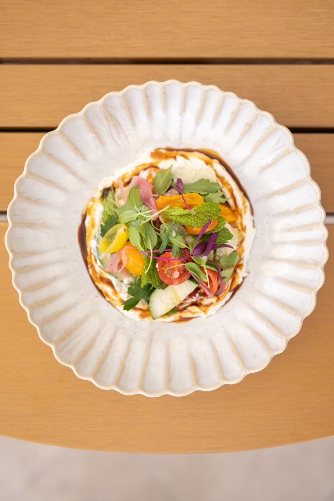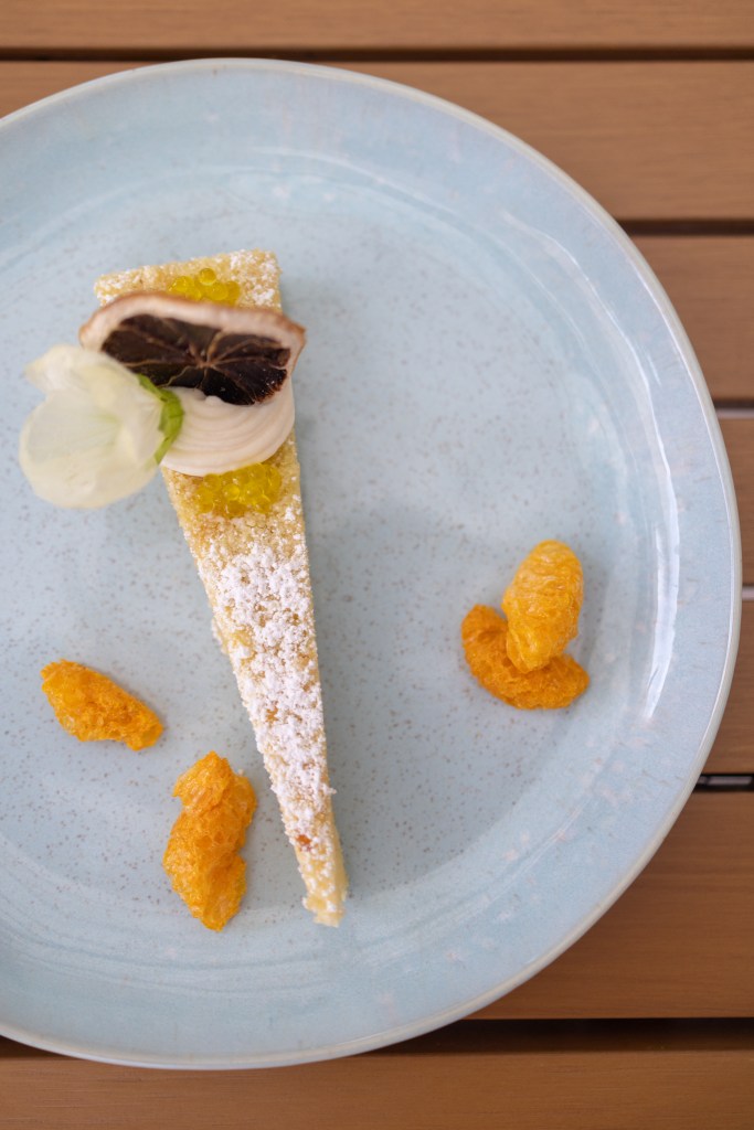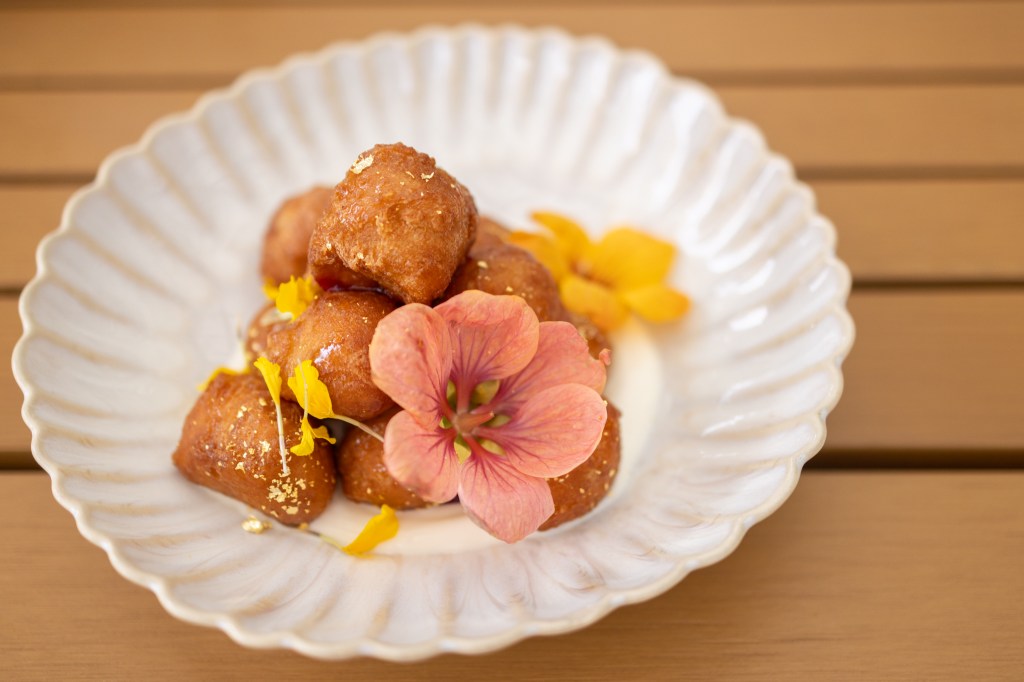 Just when I thought it couldn’t get any better, dessert arrived: loukoumades — Greek donuts with rose water and lychee, served with strained yogurt — and an olive oil cake made with Goleta citrus and crème fraîche.